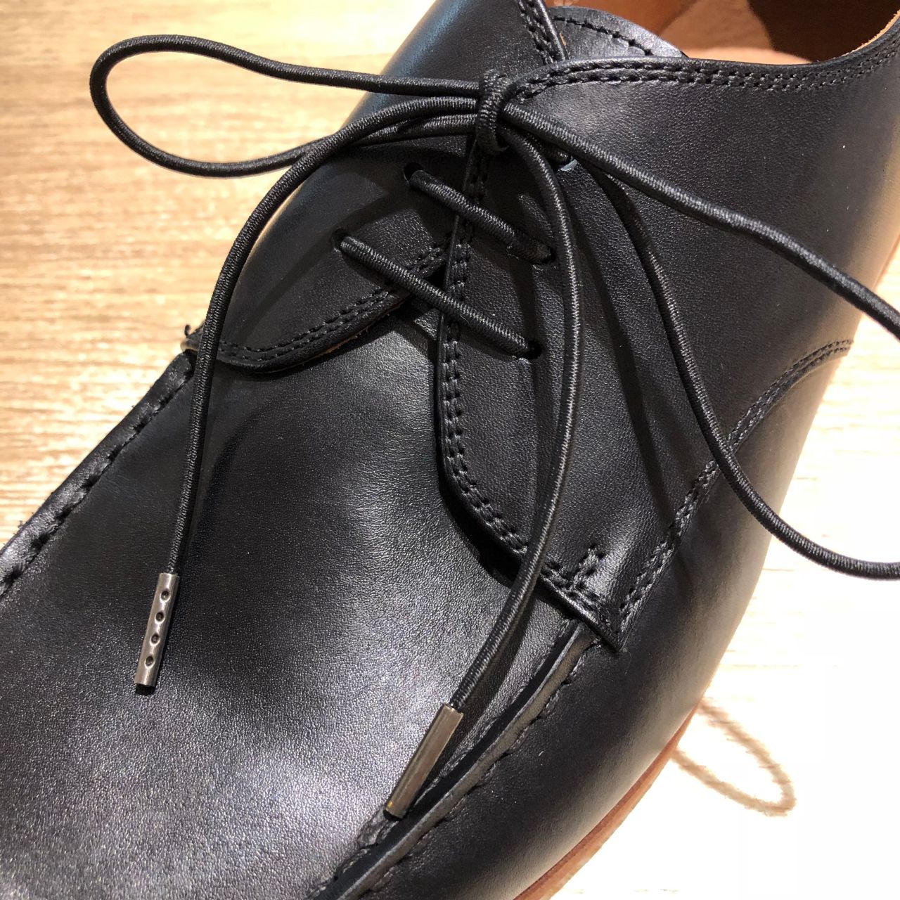 こちら、近くで見ないと分からないくらいですが、なんとシューレースがゴムになっております!