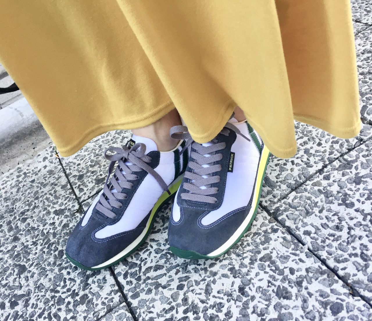サイドから見た時のイエローグリーンが足元をポップに演出してくれます☆