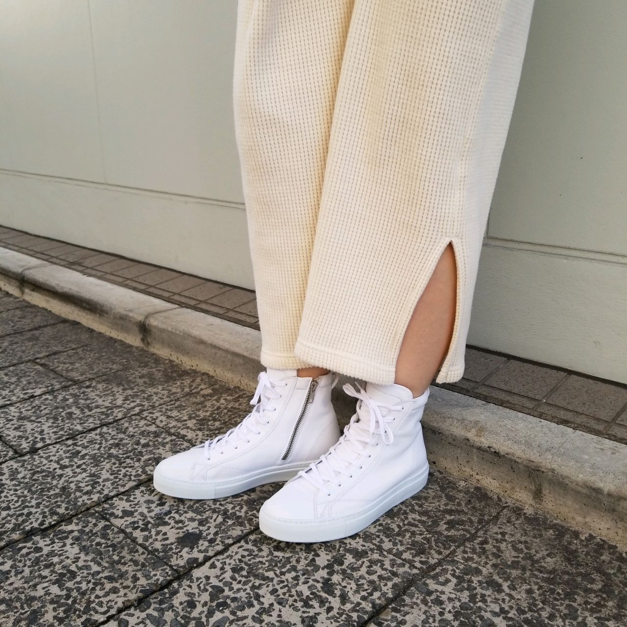 カジュアルに抵抗のある方にも取り入れていただきたい大人なハイカットレザースニーカーです。