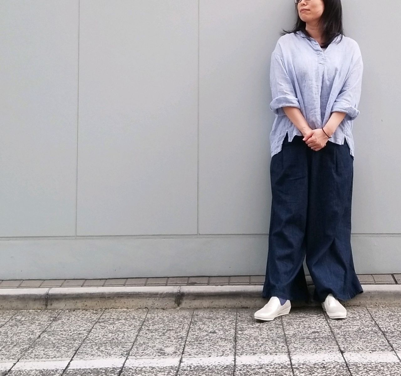上下共にゆったりとしたアイテムですが、足元をスッキリと見せることで野暮ったくなりません◎