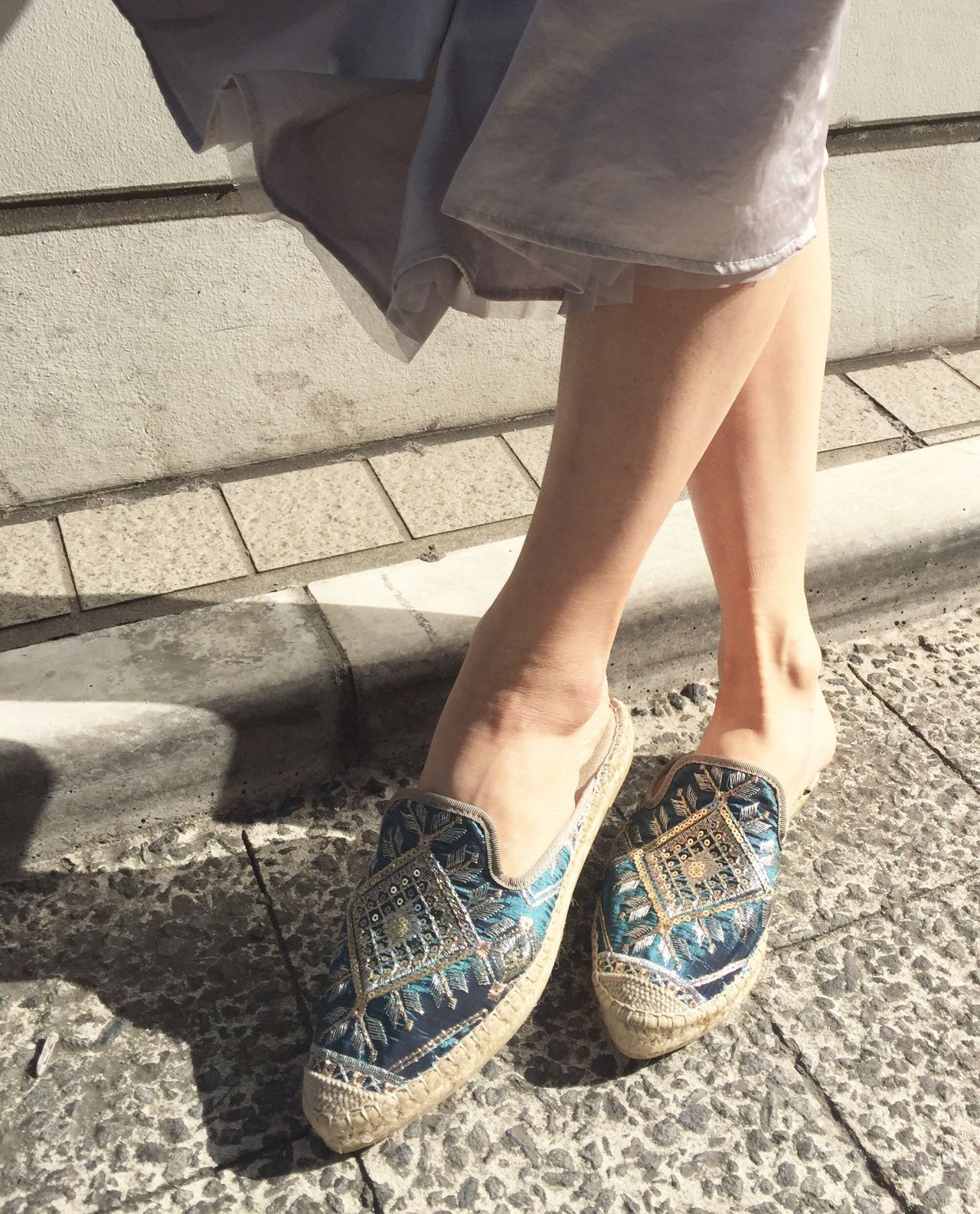 様々なブランドが今年もスリッパサンダルを出しておりますが、こちらの『vidorreta』のスリッパサンダルは刺繍柄とジュート素材でリゾート感満載です!