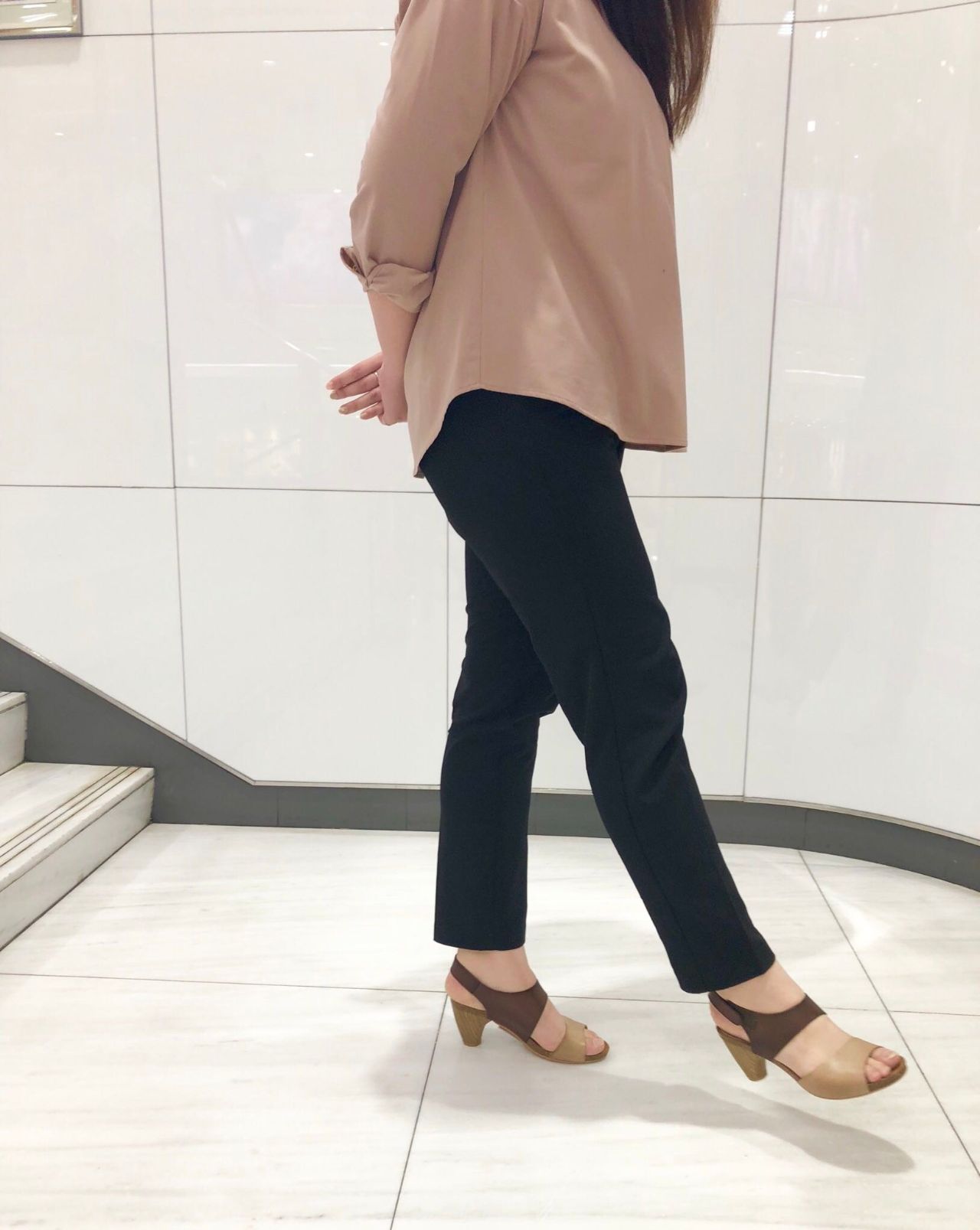 ですが接地面が広く安定感バツグンなので、ヒールの高さを感じさせない履き心地です。