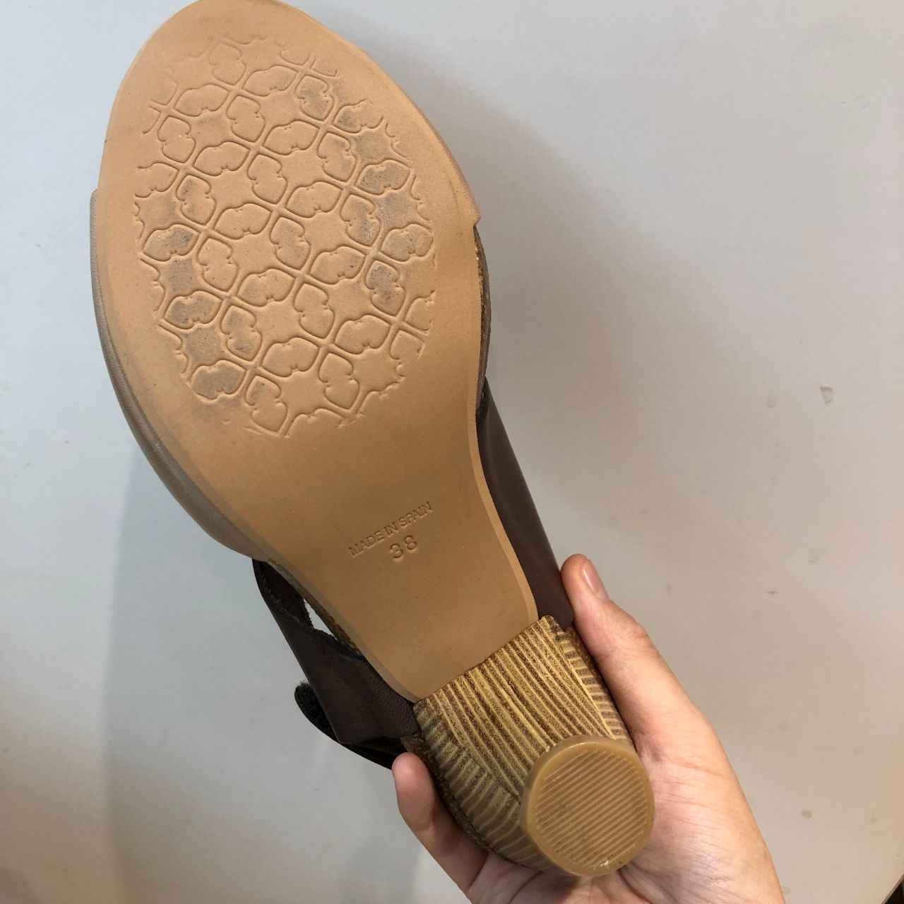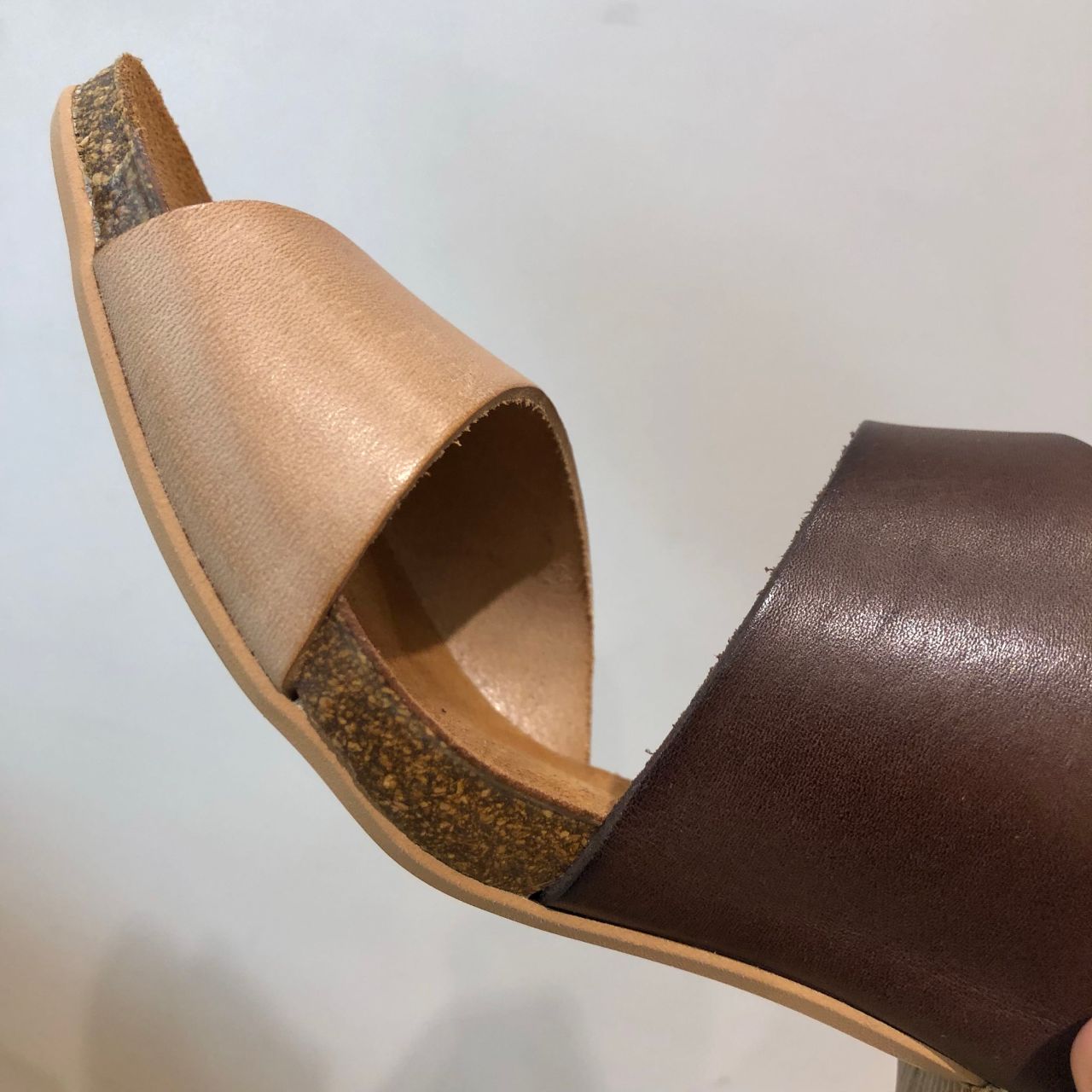 つま先側がヌーディーカラーなので馴染みやすく、甲側のダークブラウンで引き締めてくれるので、お足のラインを綺麗に見せてくれます。