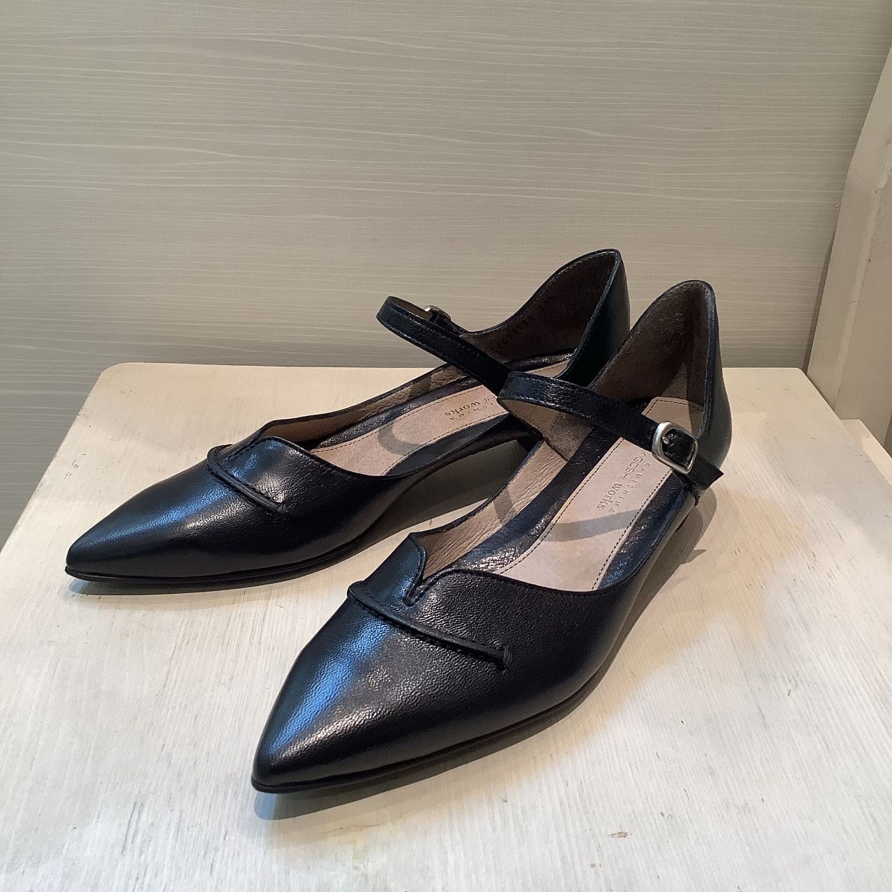 ☆★履き口のVカットデザインが足をスッキリと見せてくれます。シンプルながらも、ストラップや、甲につまみのあるデザインがポイントに。履きやすい3.5cmヒールで、安定感もあります♪