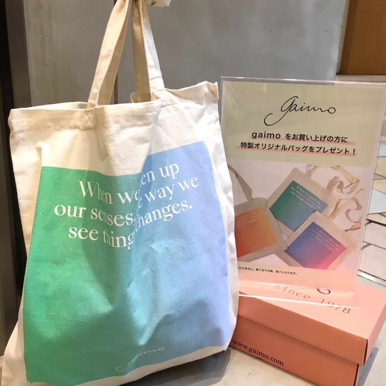 只今、gaimoをお買い上げのお客様に特製オリジナルバッグをプレゼントしております。