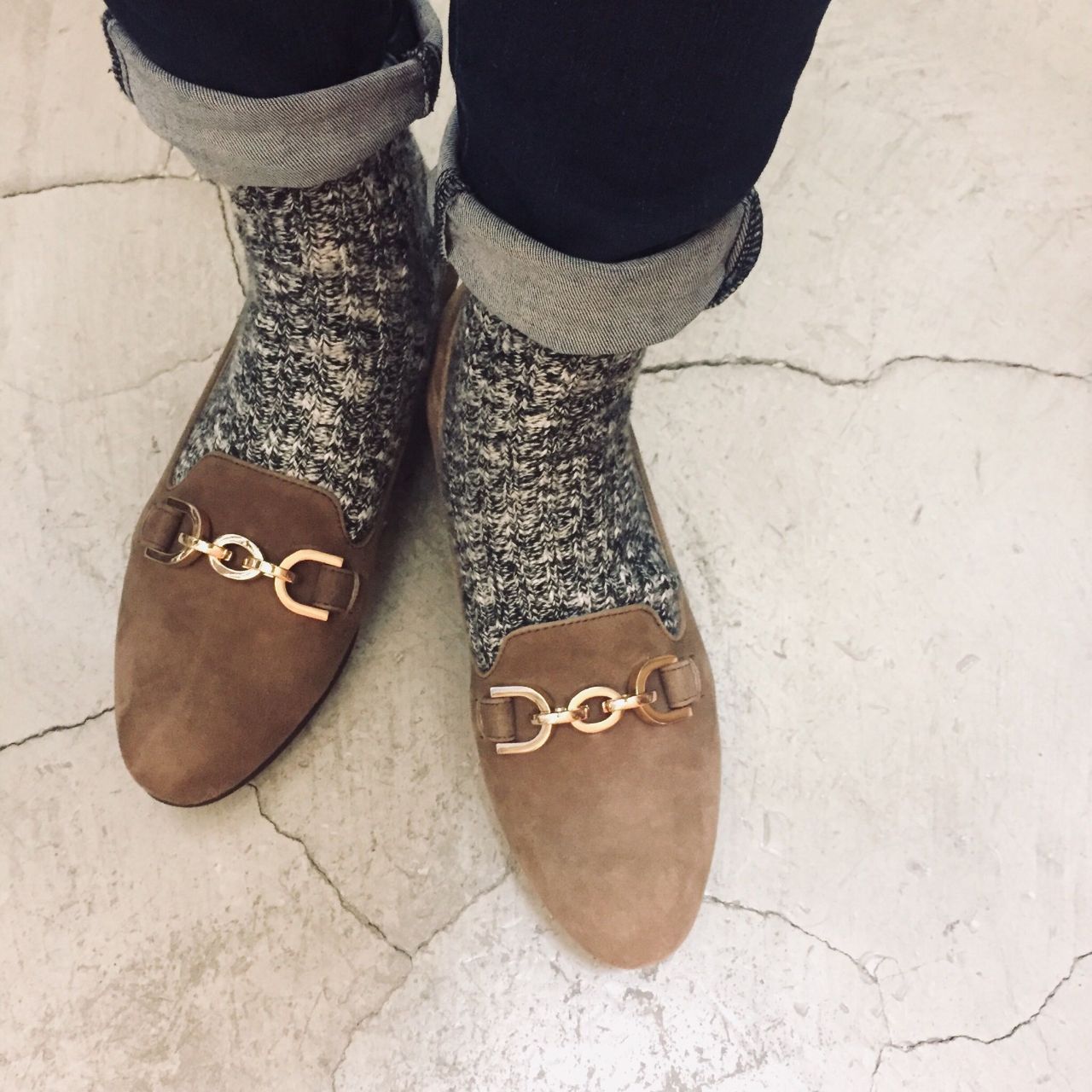 ソックスにデニム合わせでも品良くまとまります。