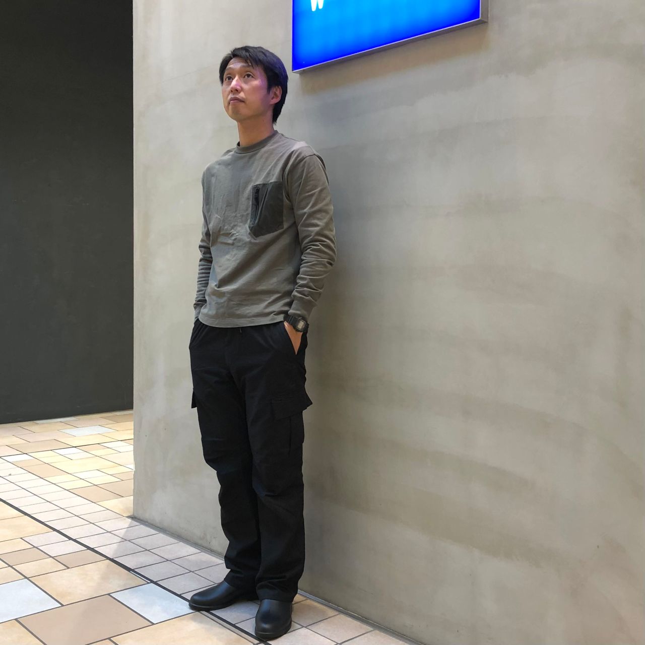 ブラックのカーゴパンツで合わせてみました。