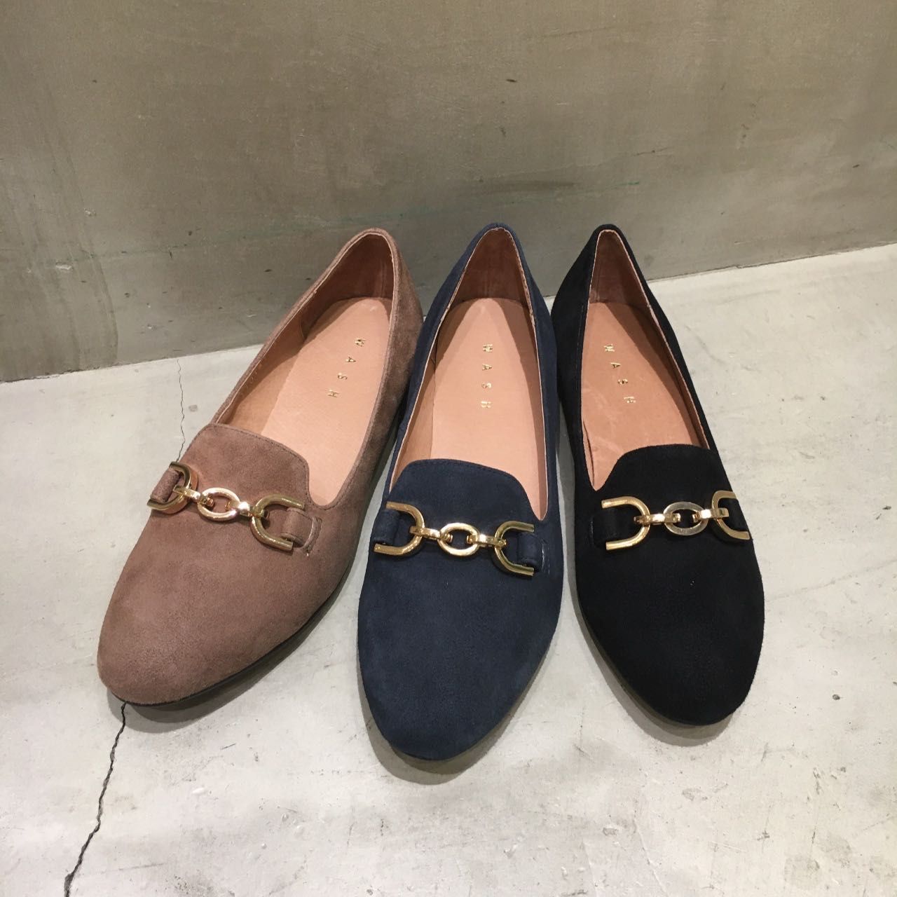 スエード素材と丸みのあるトゥが、優しい印象を与えてくれます!