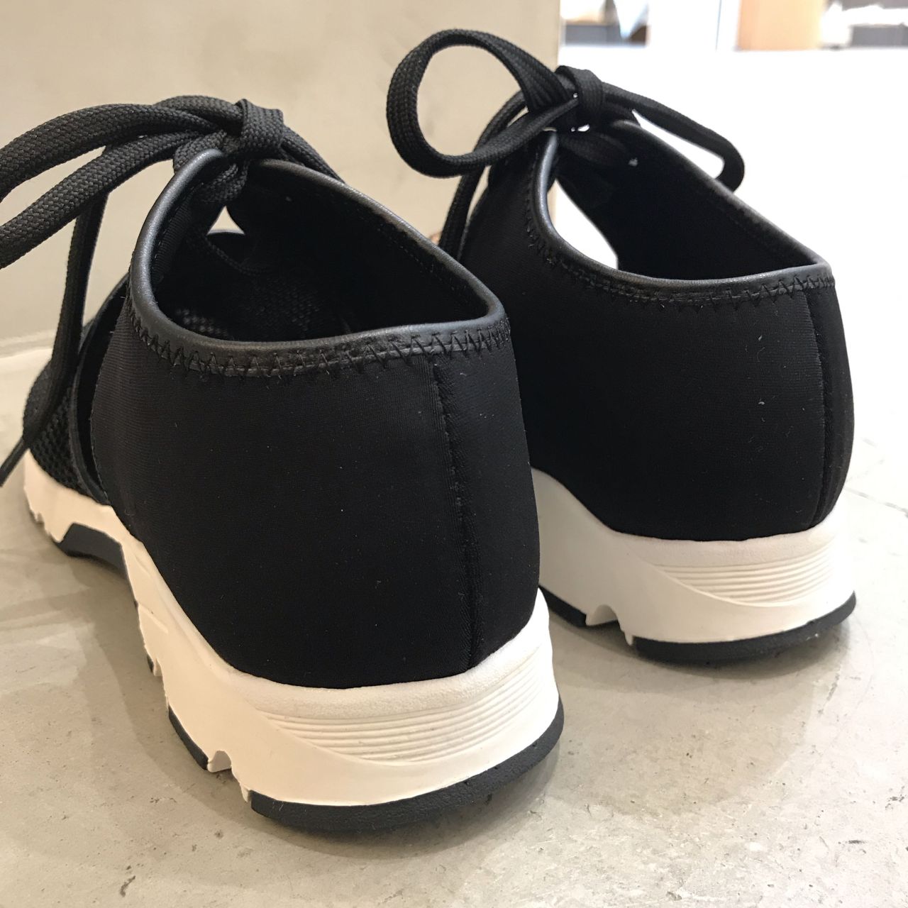 かかとまわりは光沢感のあるサテンで