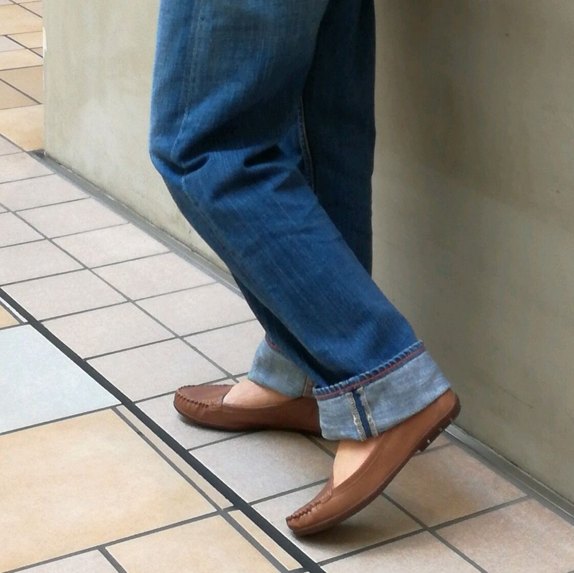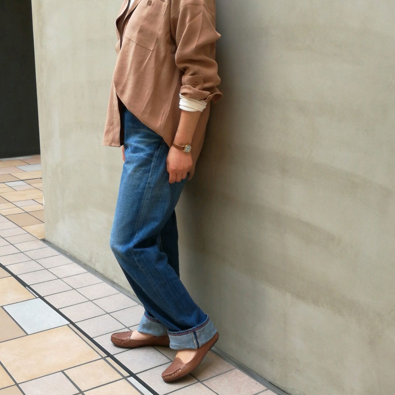 カジュアルコーデも足元の肌みせで女性らしさが出ますね。