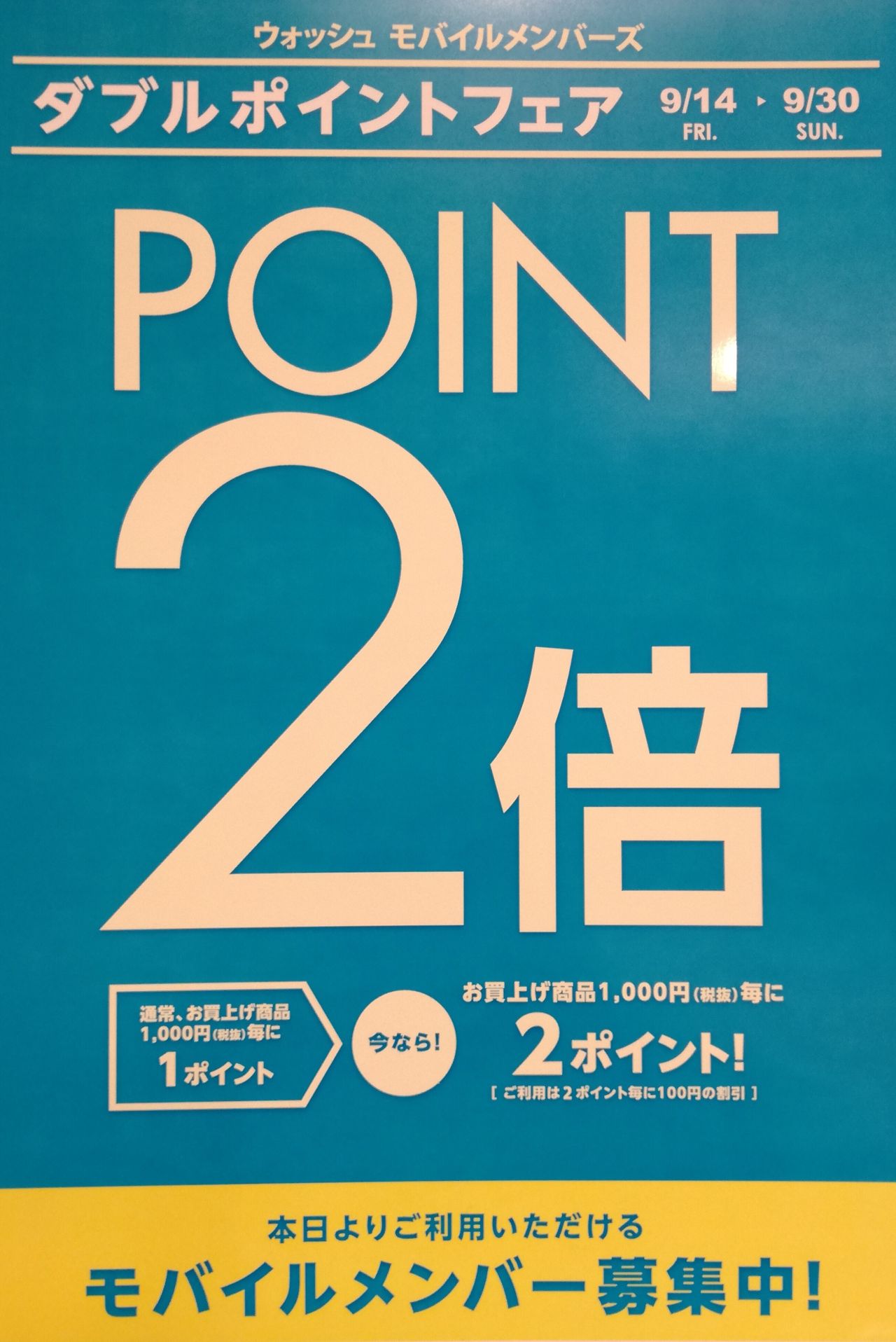 本日より9月30日まで、ダブルポイントフェアを開催中です。