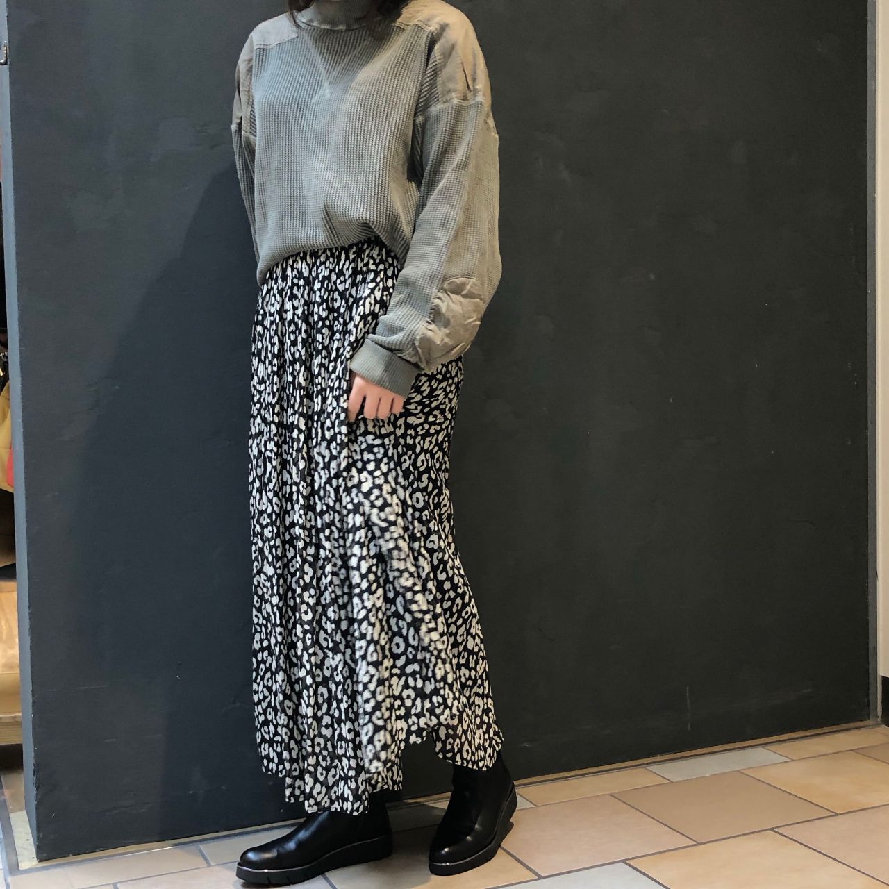 秋のトレンドのレオパードスカートに合わせて見ました。
