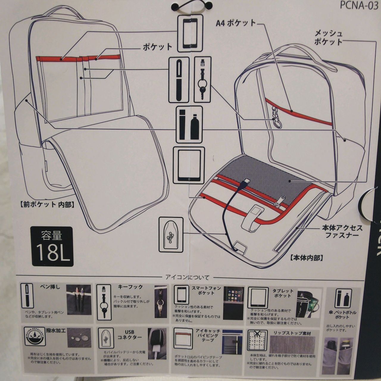 スマートフォンポケット、タブレットポケット、パイピングポケット。