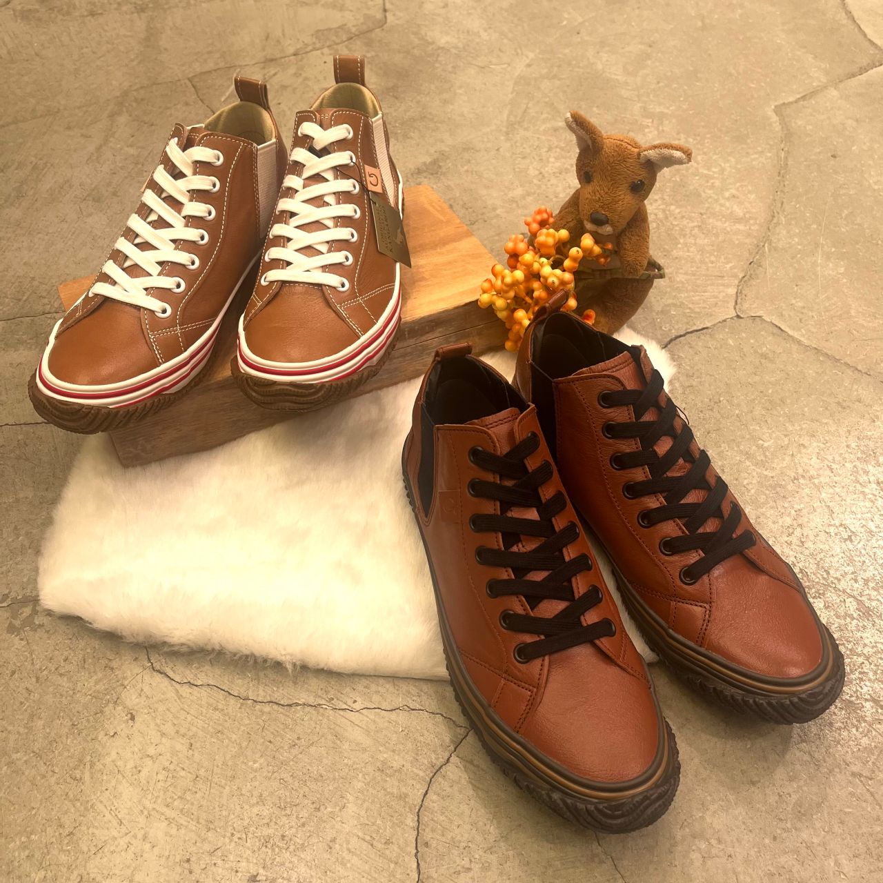 深みのあるREDとソールのBROWNの相性がよく、秋冬で大活躍するカラーです。