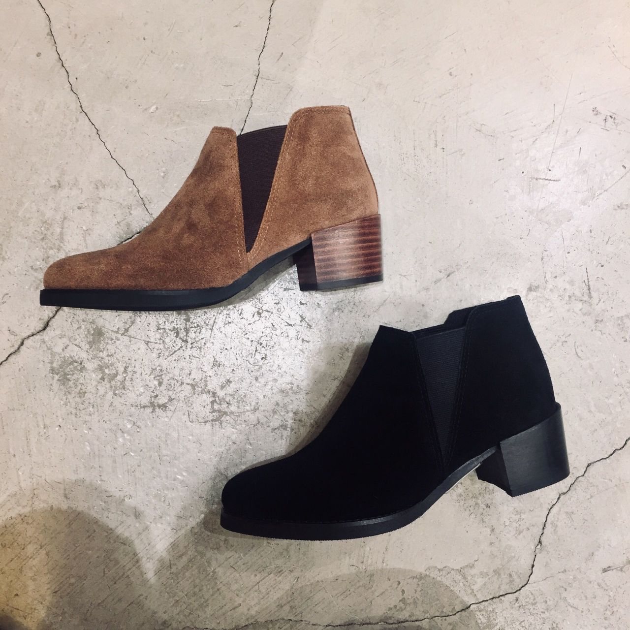 スエードサイドゴアのショートブーツ。