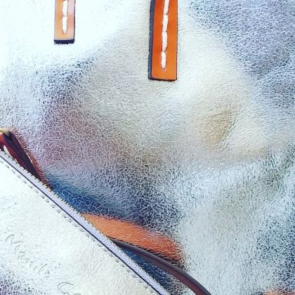 ②のカラーはこちらの画像ではシルバーに見えますが明るいところですとシルバーに近い色味になります。暗いところですと青みが強くでてメタリックブルーに見えます。