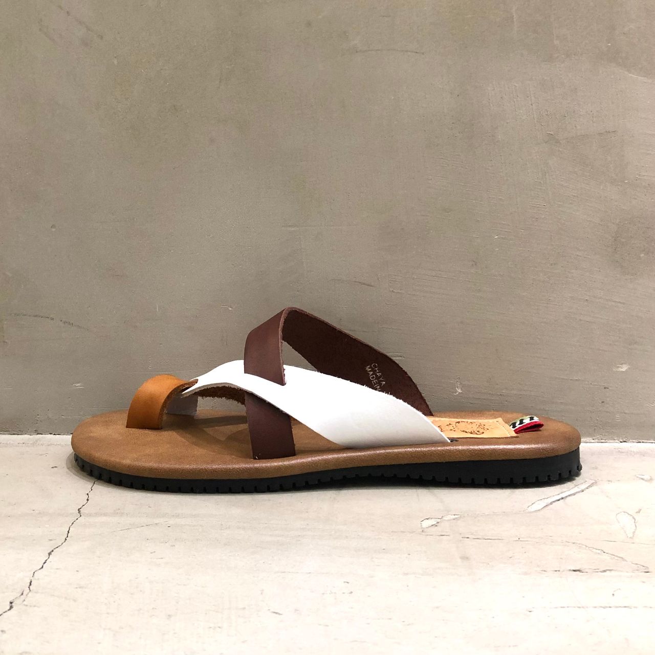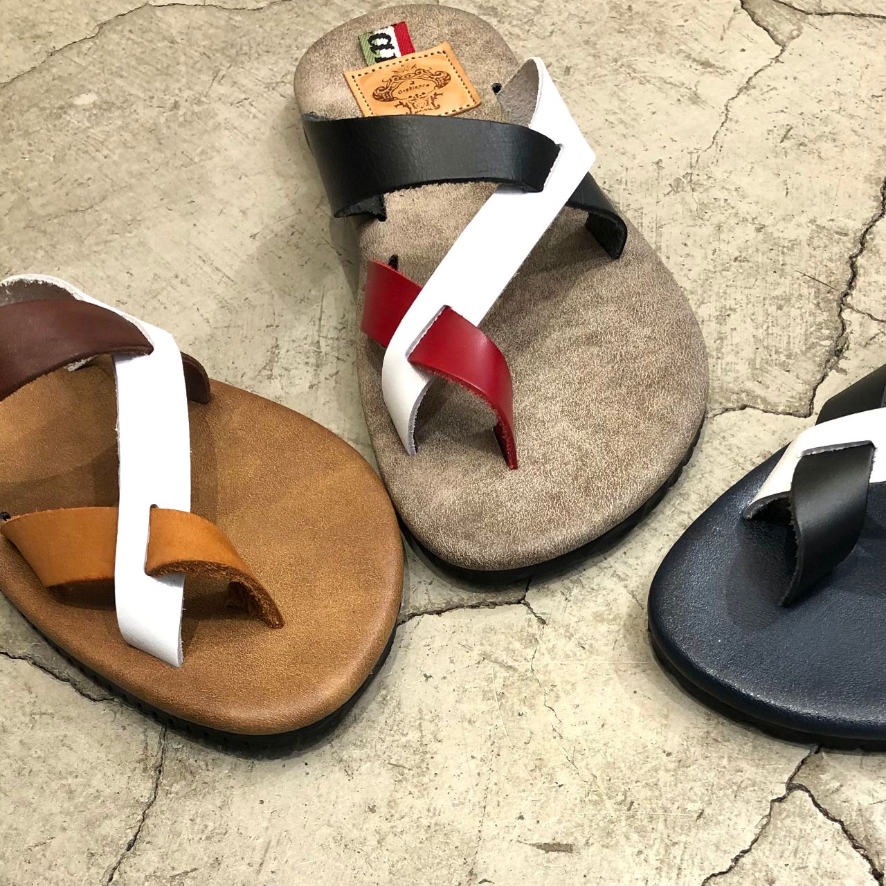 親指で挟み込むトングサンダルの一種なのですが少し変わったデザインです。