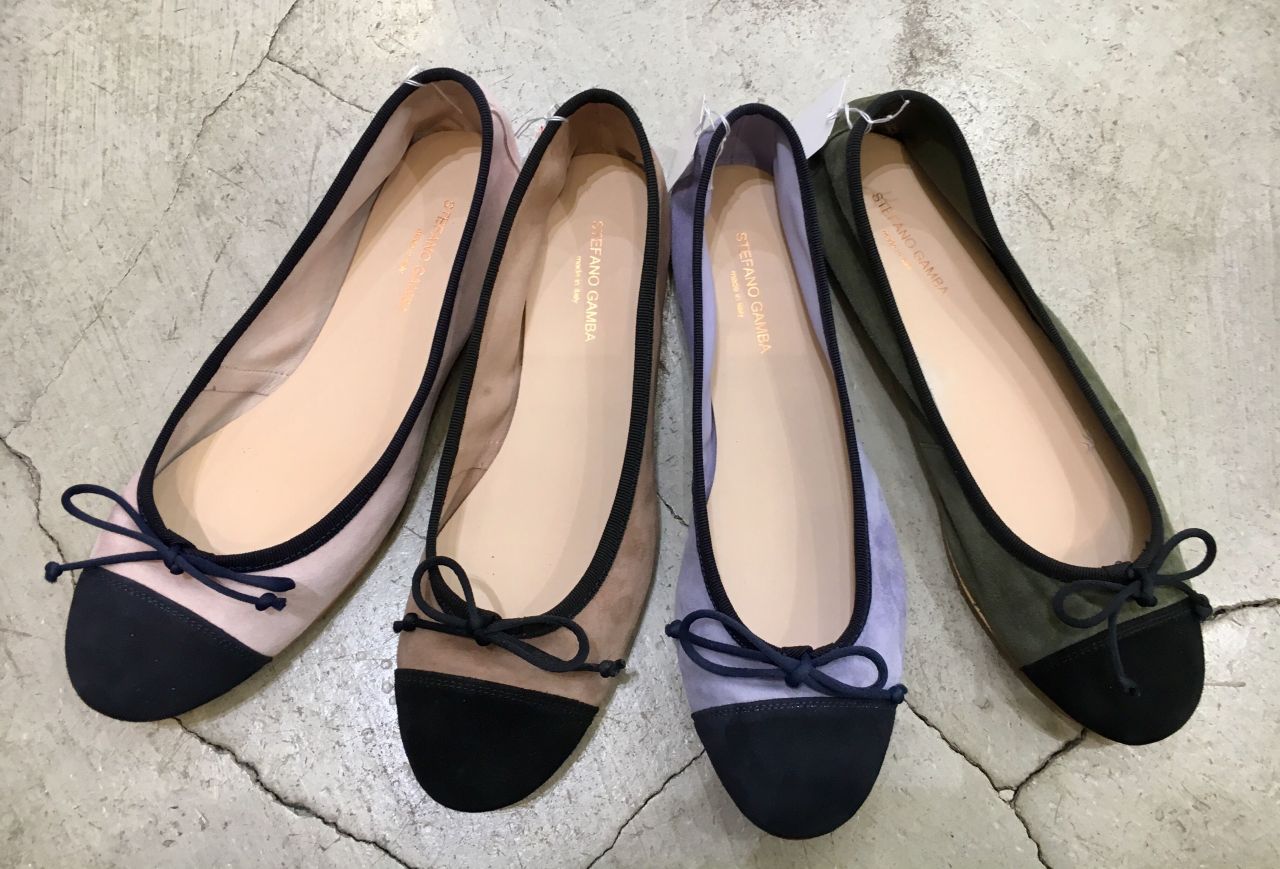 スエードで柔らかい印象のバレエシューズ。