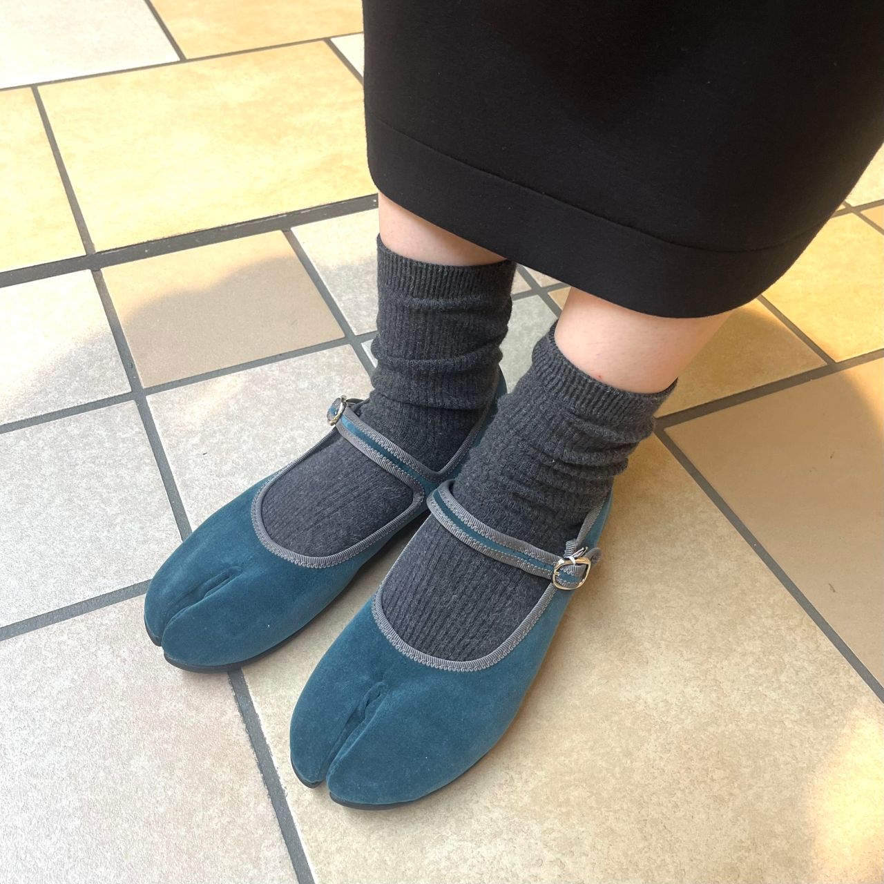 今回は、グレーの足袋靴下で合わせてみましたが、素足で合わせてもおしゃれです^ ^