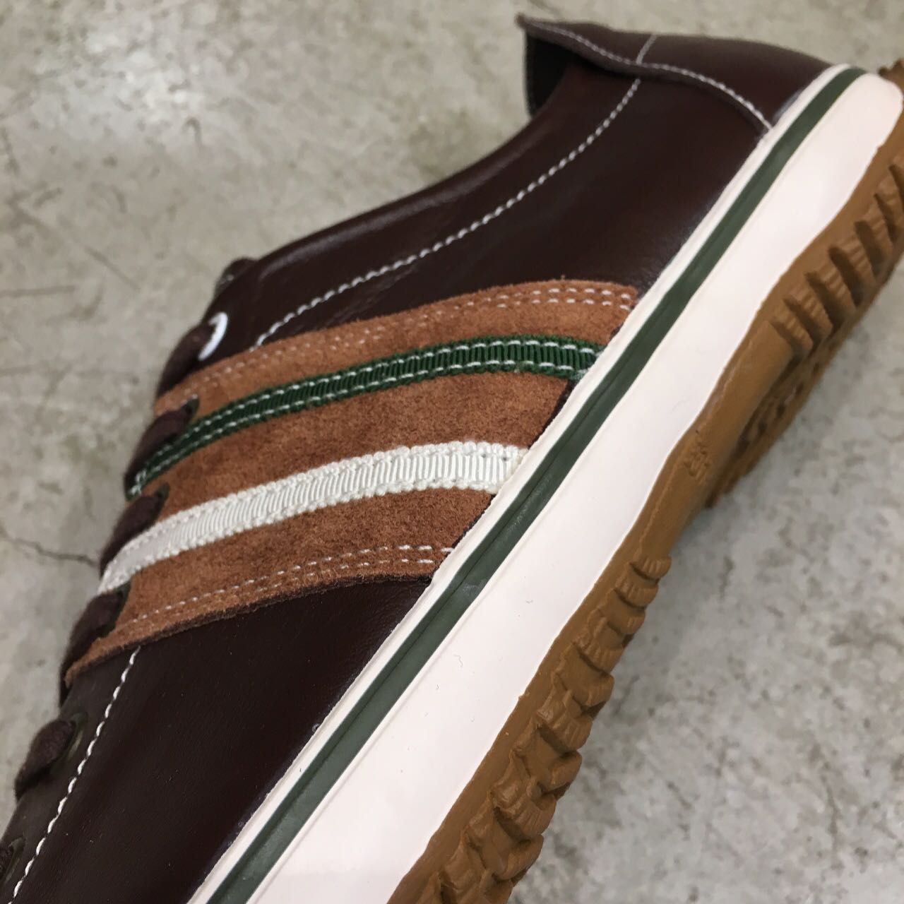 ブラウンとモスグリーンがホワイトのラインを挟む事による素晴らしい配色。