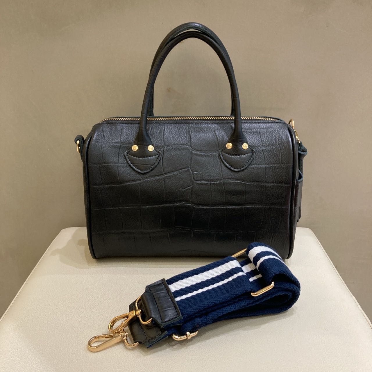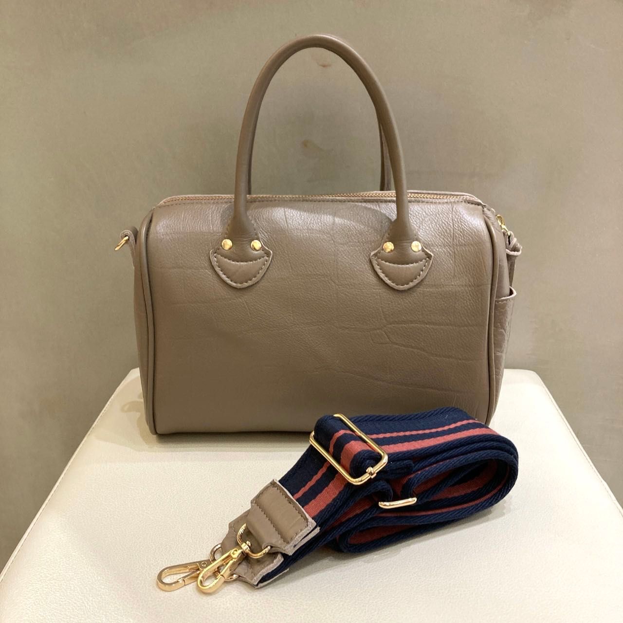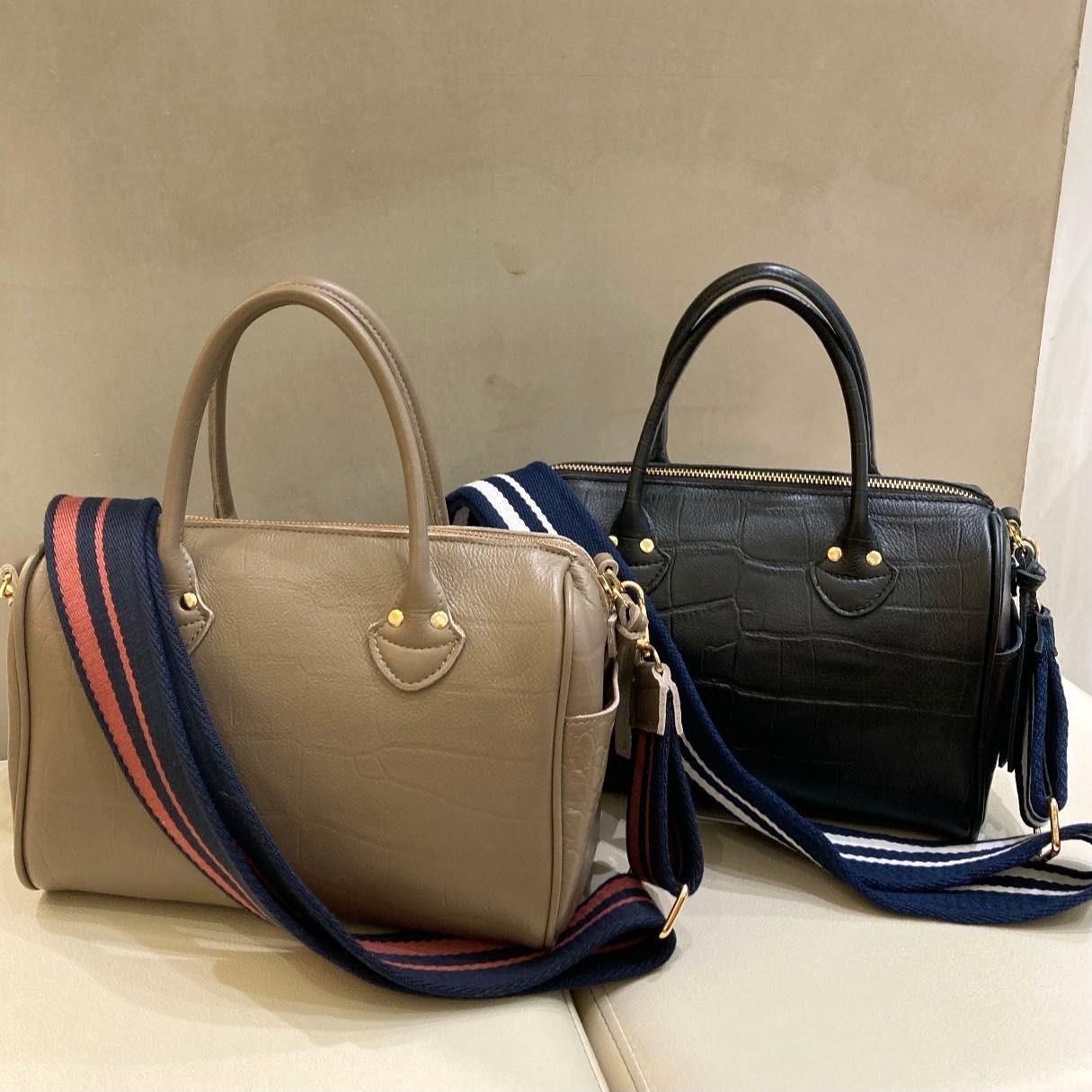 オイル加工を施した牛革を使ったボストンタイプのBAGで、型押しのデザインが上品です!