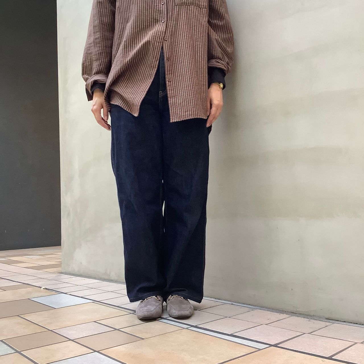 すっきりとしたシルエットにビットの飾りが、きれいめにもカジュアルにも合います。