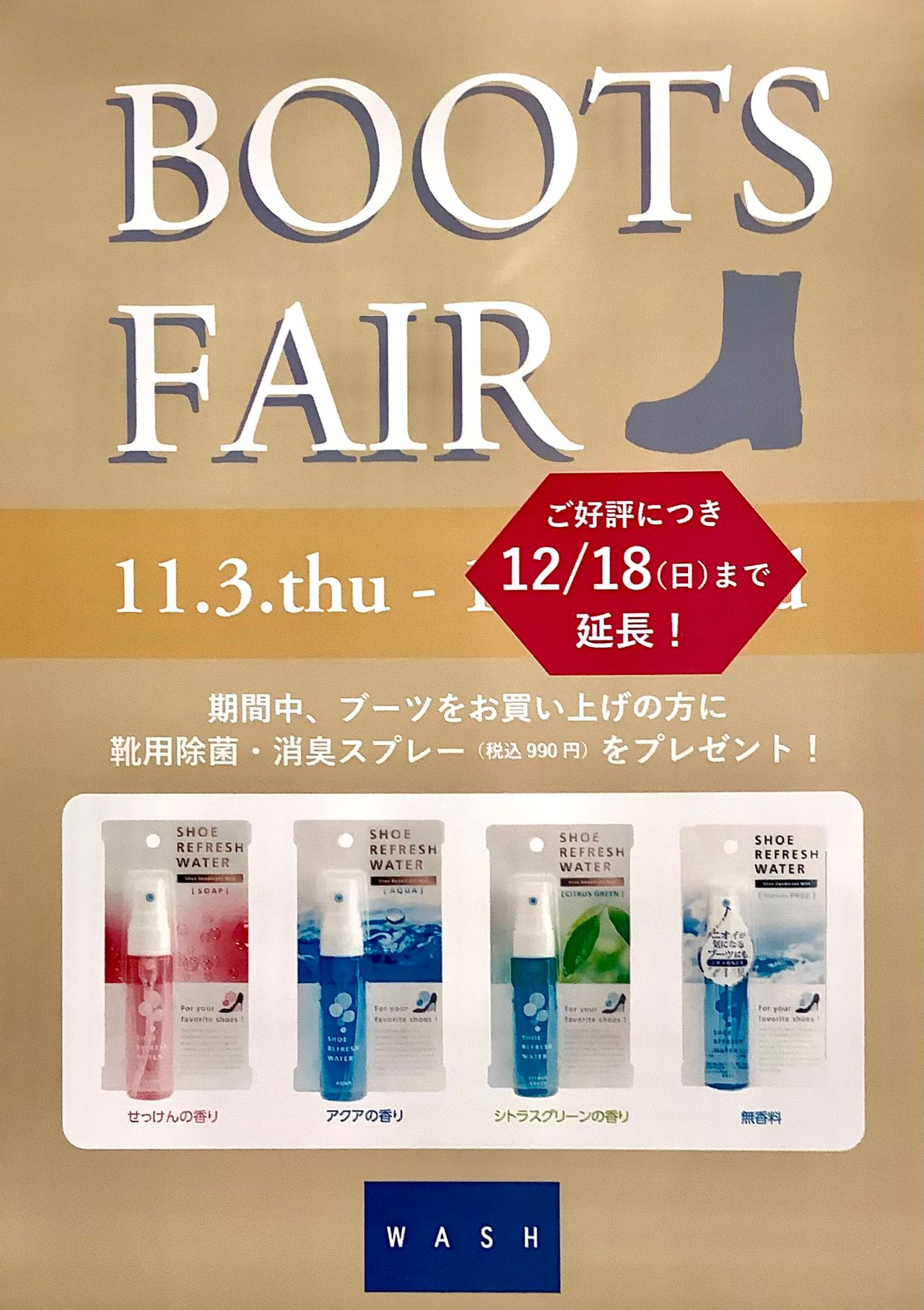ブーツフェア更に期間延長しております!