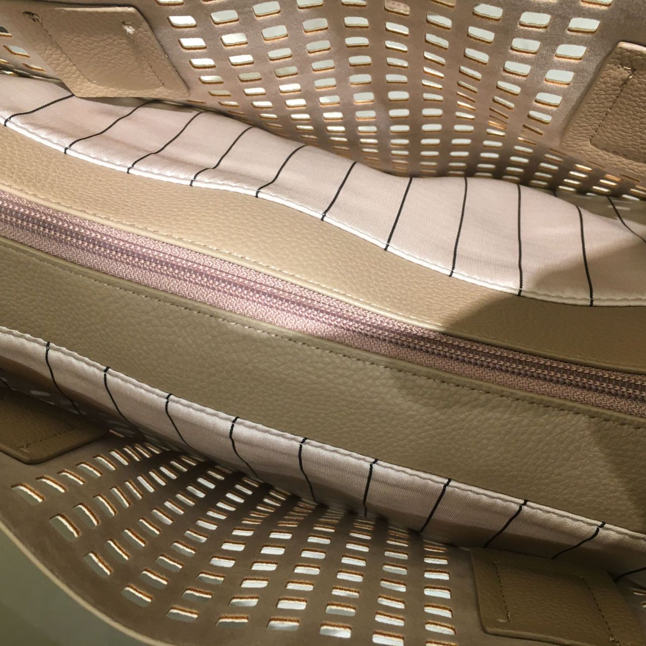パンチングの向こうにさりげなく見えるストライプの生地もかわいいです。