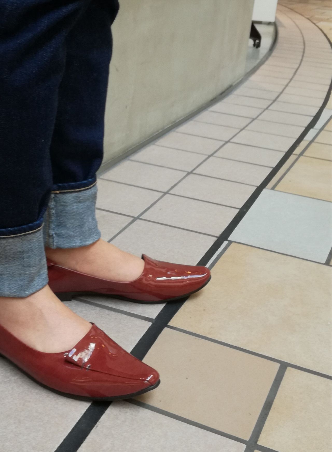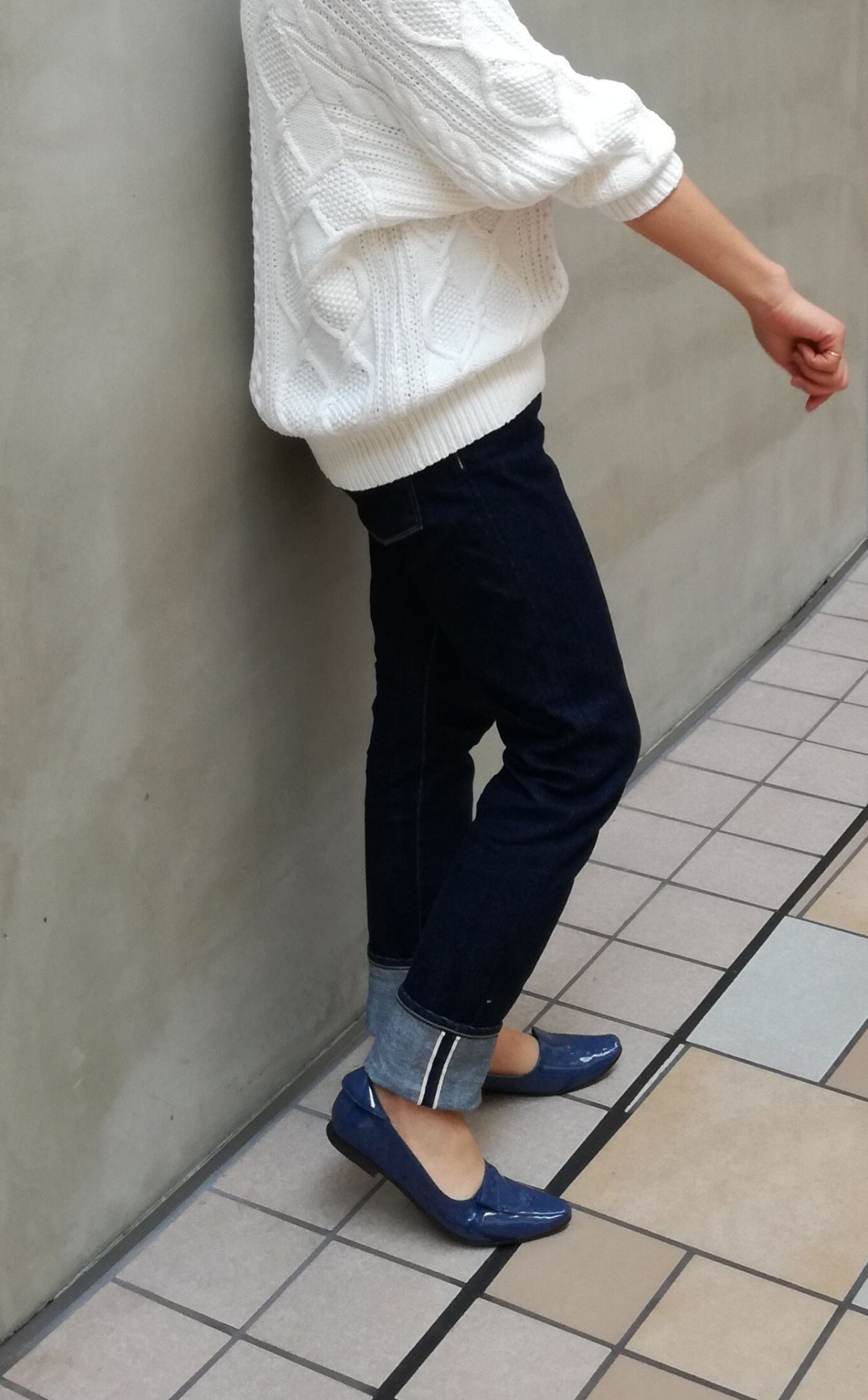 足が綺麗に見える形、ソールの返りの良さ、合成皮革なので気負わずに履けること、どんなコーディネートにも合わせやすい…などなど。