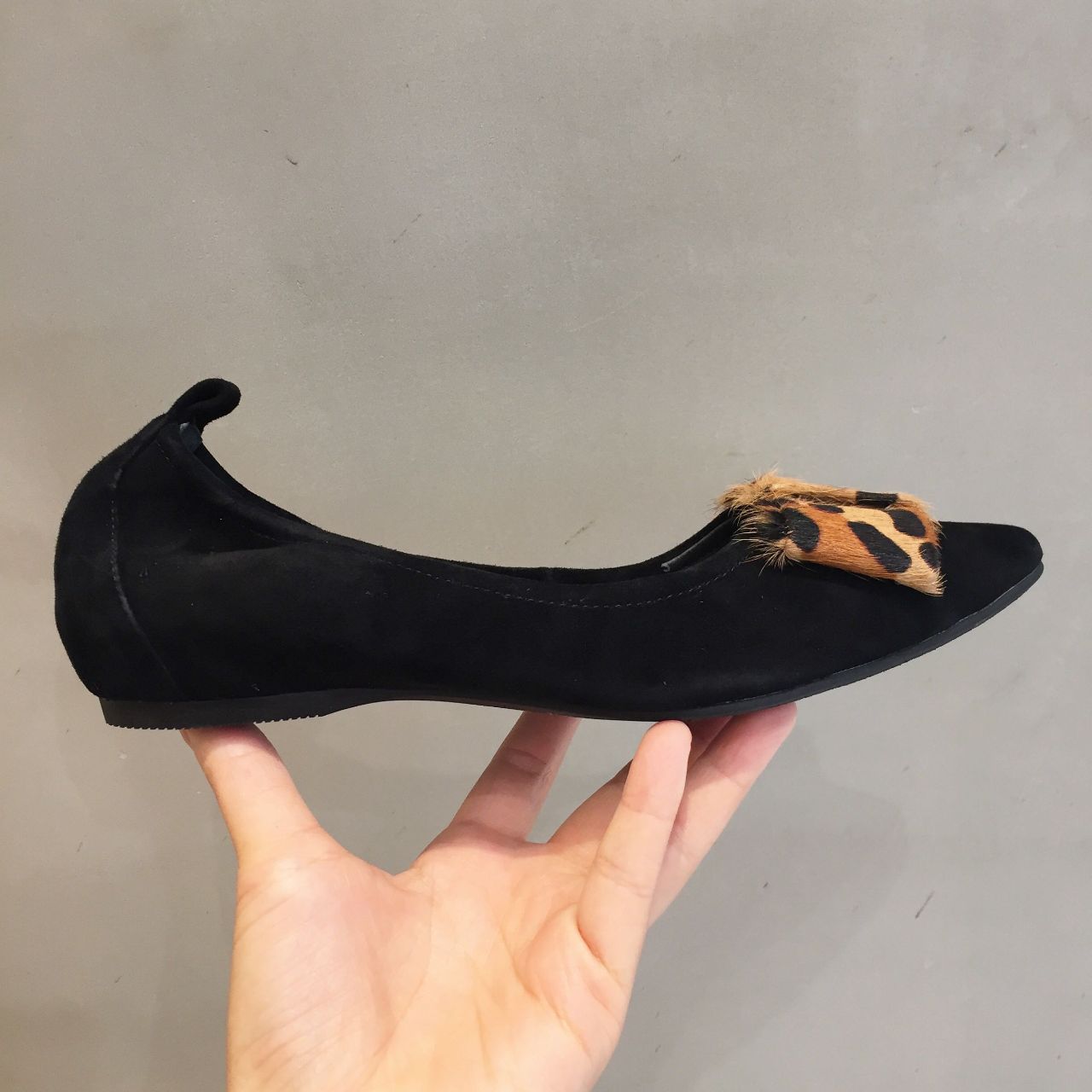 BLACKスエード素材にヒョウ柄の