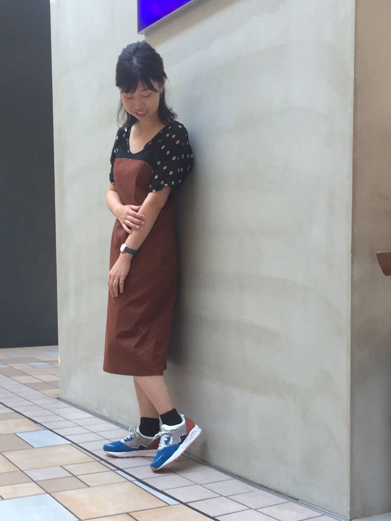 ワンピースのブラウンと合わせて