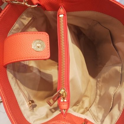 小さめのポーチ、お財布、350mlのペットボトル等収納可能です。