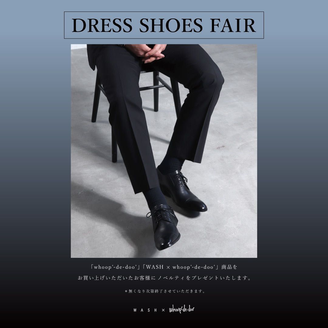 期間中【whoop'-de-doo'】 、【WASH×whoop'-de-doo' 】のドレスシューズをお買い上げ頂いたお客様に選べるオリジナルノベルティをプレゼント致します。