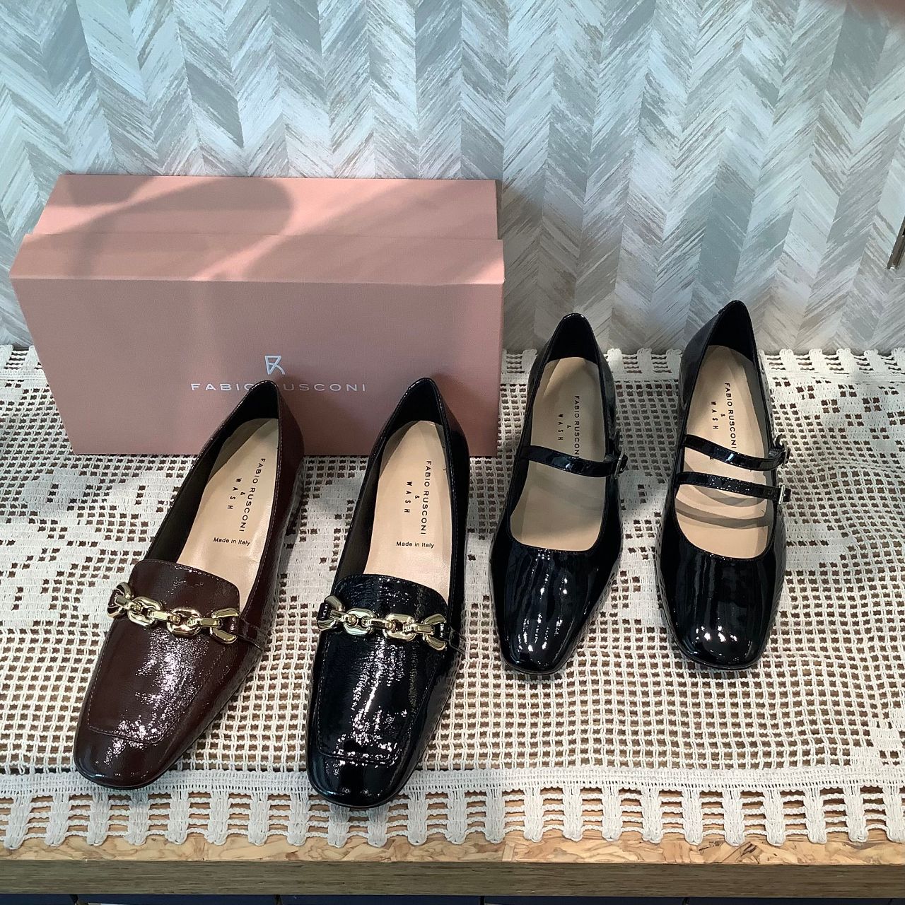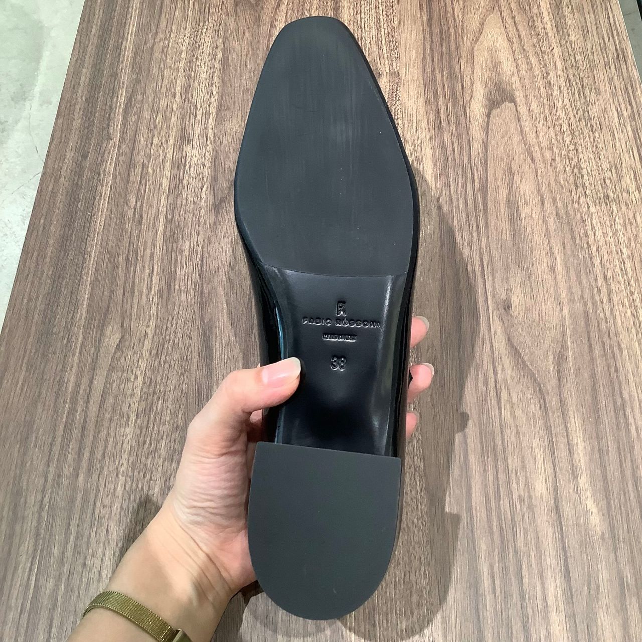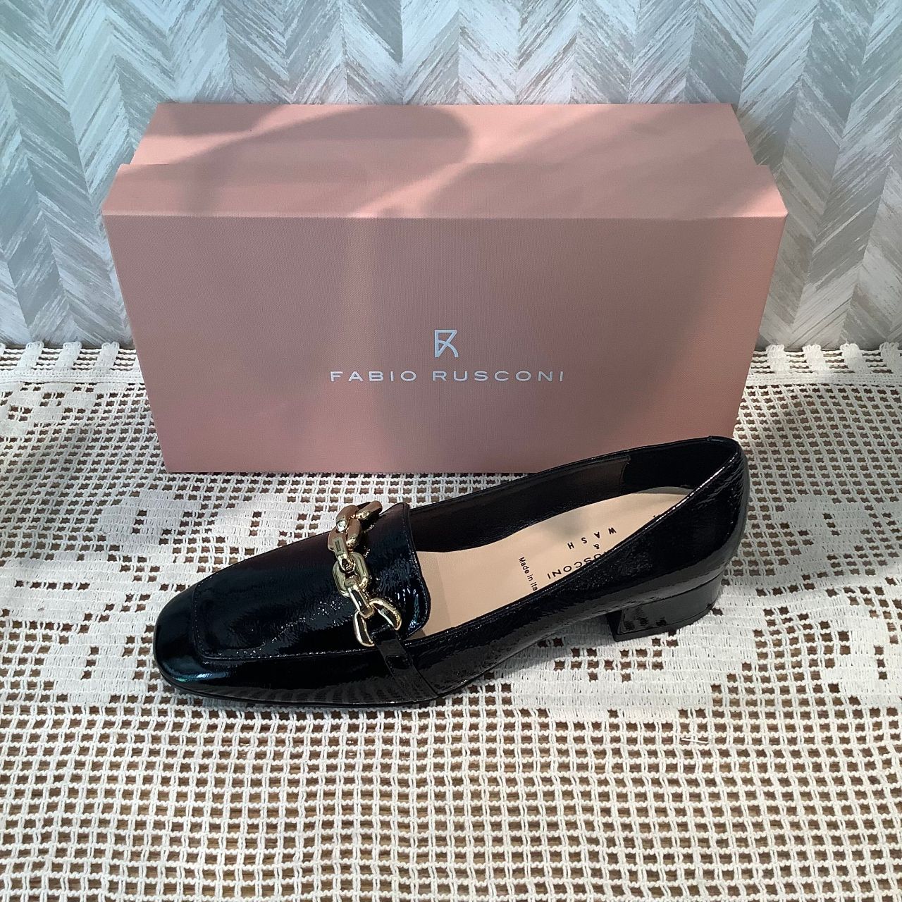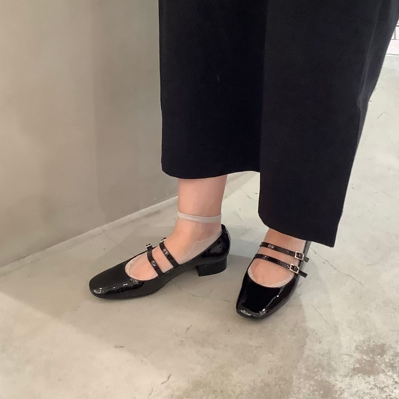 ☆ソフトなエナメル革に、甲のチェーンのビット飾りがオシャレで目を惹きます♪