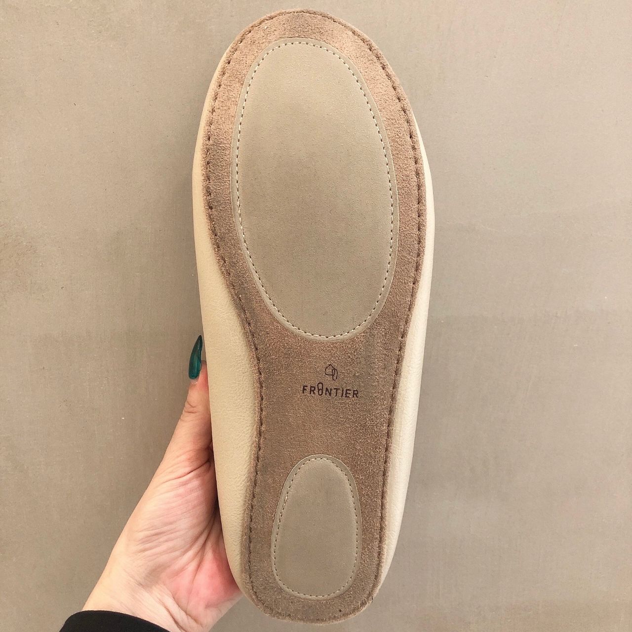 靴の製法を用いているため、しっかりした形状で脱ぎ履きがスムーズなのも◎。