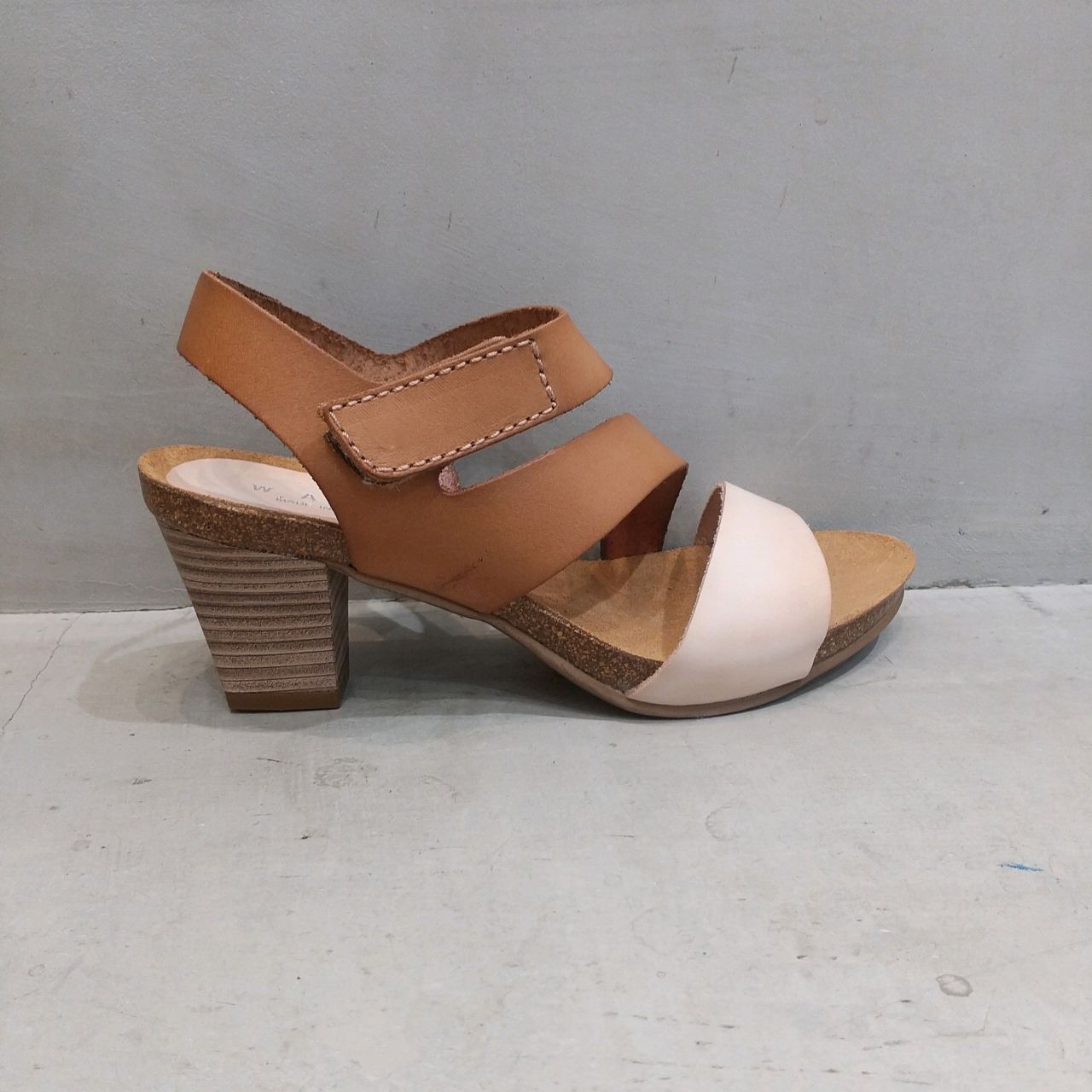 WASHオリジナル、コンビカラーがおしゃれなヒールサンダルです。