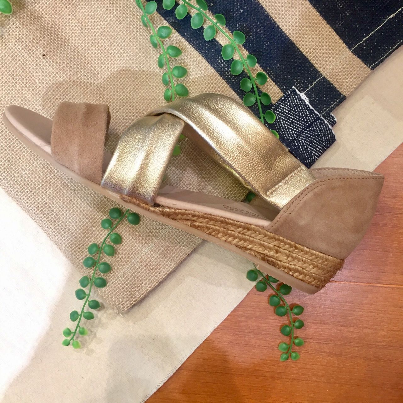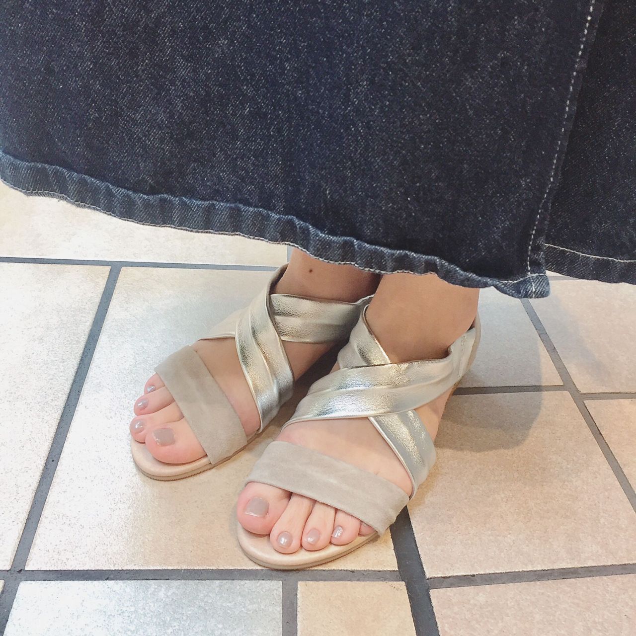 クロスベルトが足をスッキリ見せてくれる1足。
