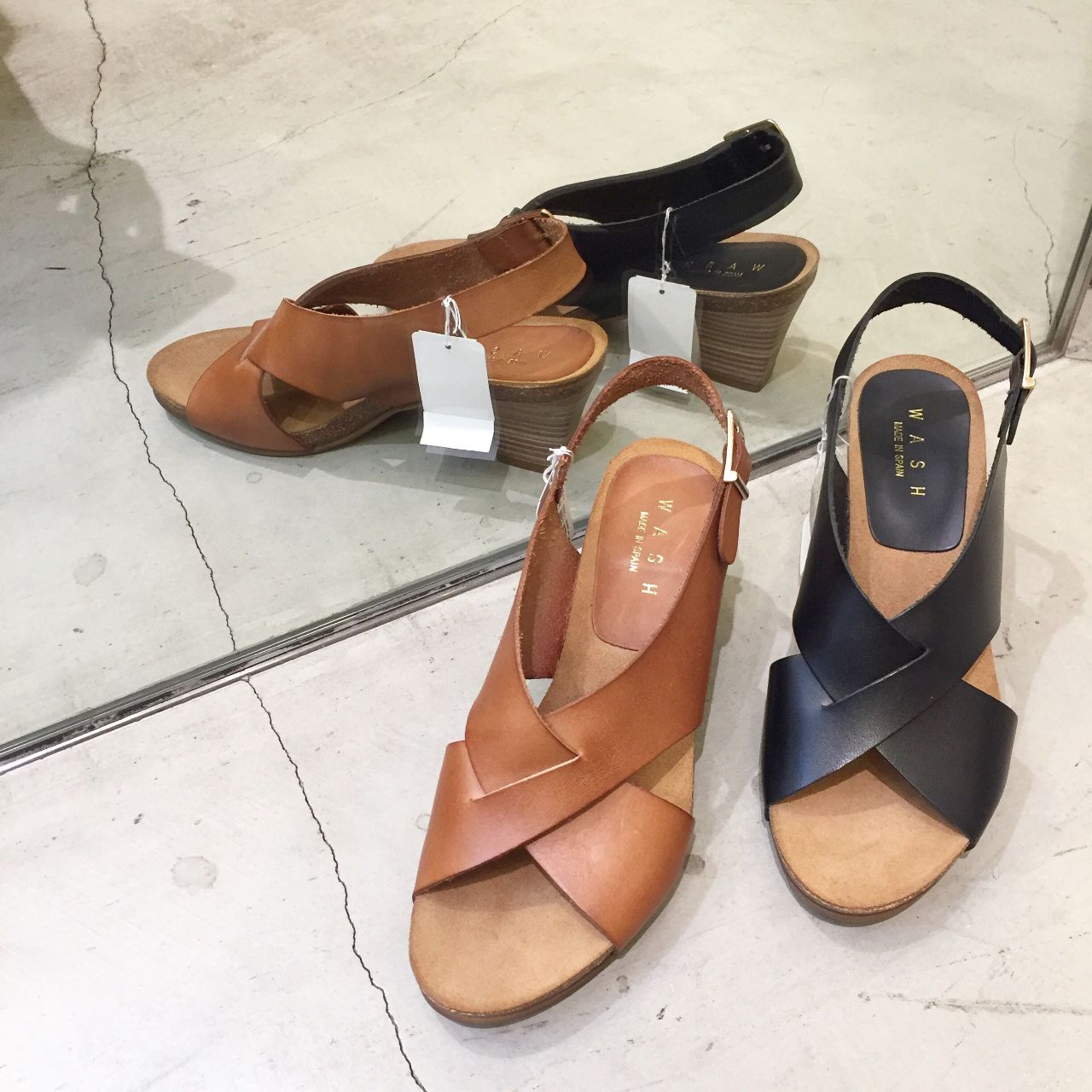 WASHオリジナルの定番ヒールレザーサンダル。