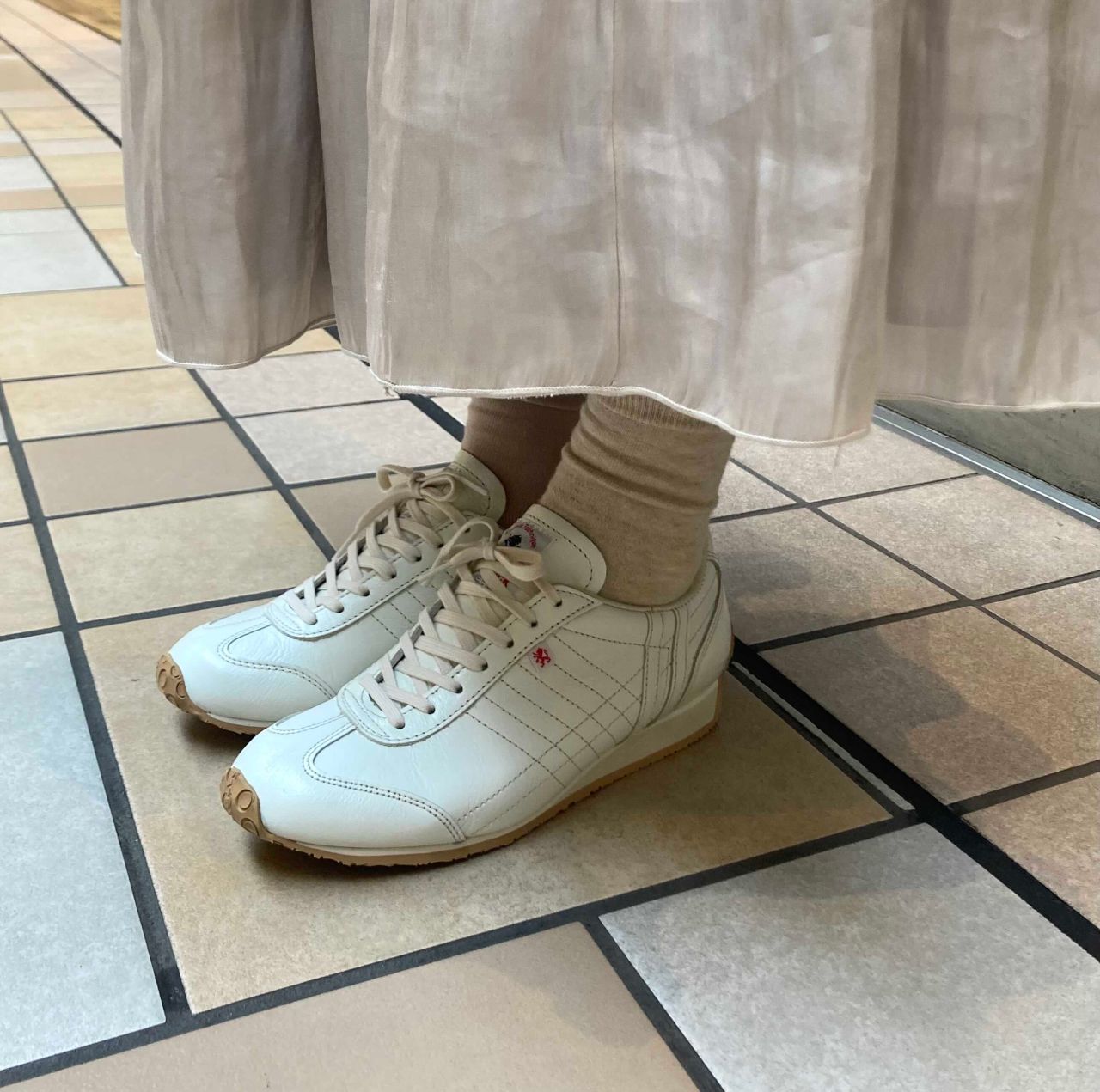 全体的に細身の為、甲や幅が心配な方は1サイズ上でゆとりを持って履いていただくのがおすすめです。