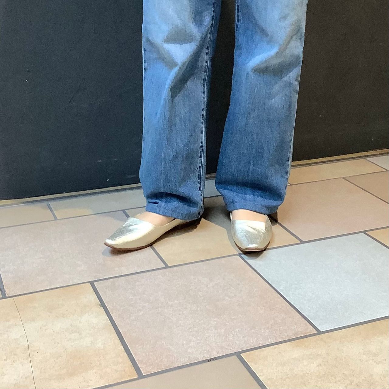 4色ある中で、ゴールドを履いて合わせてみました…!(普段のサイズ:23.5 甲・幅普通 , 着用サイズ:M)