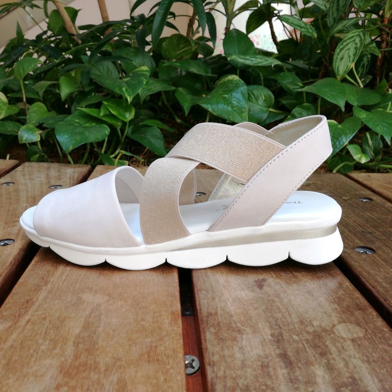 ラメのゴム素材がクロスしたデザインは、足をしっかりとホールドしてくれます。