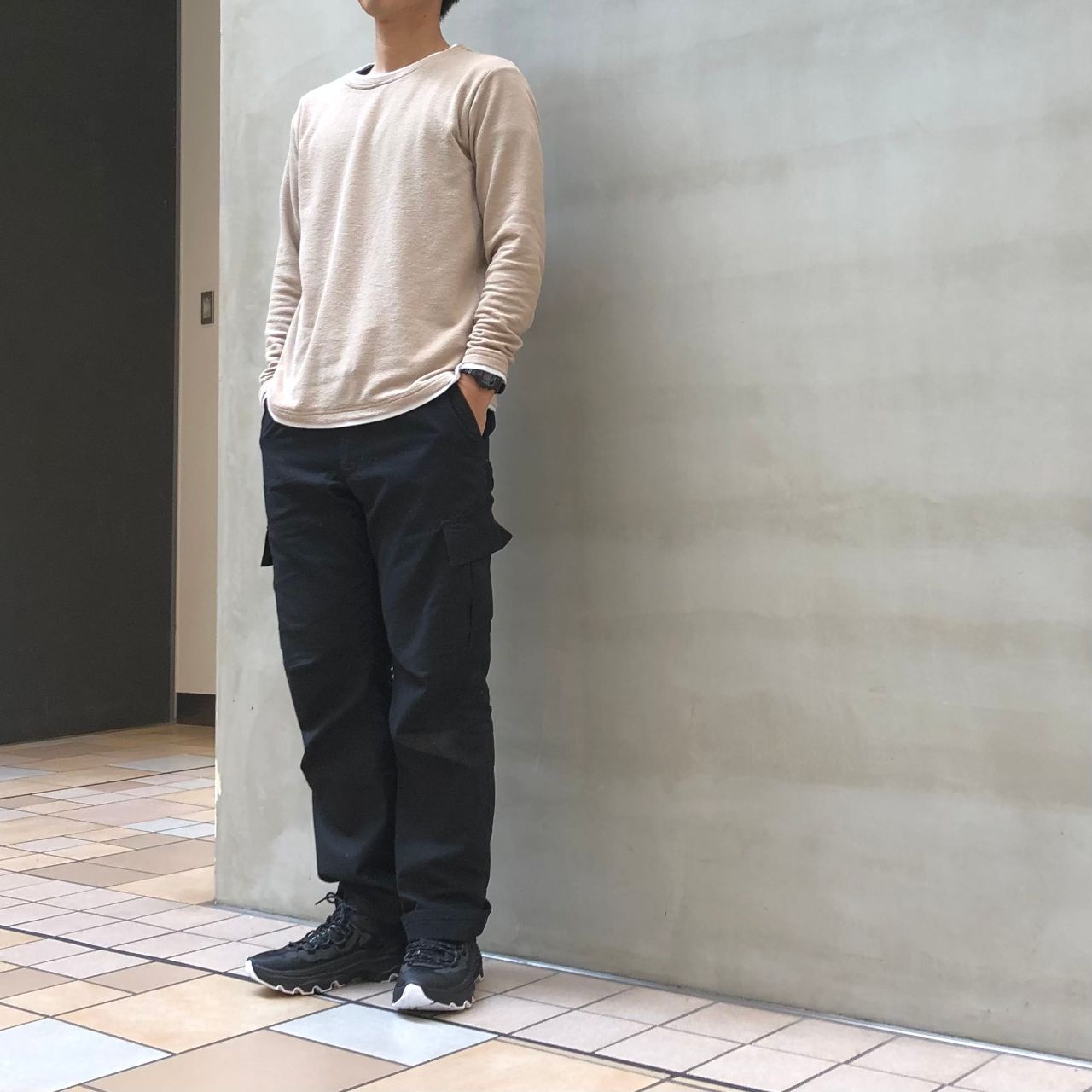 ボリュームのあるシルエットなのでカーゴパンツとの相性も◎