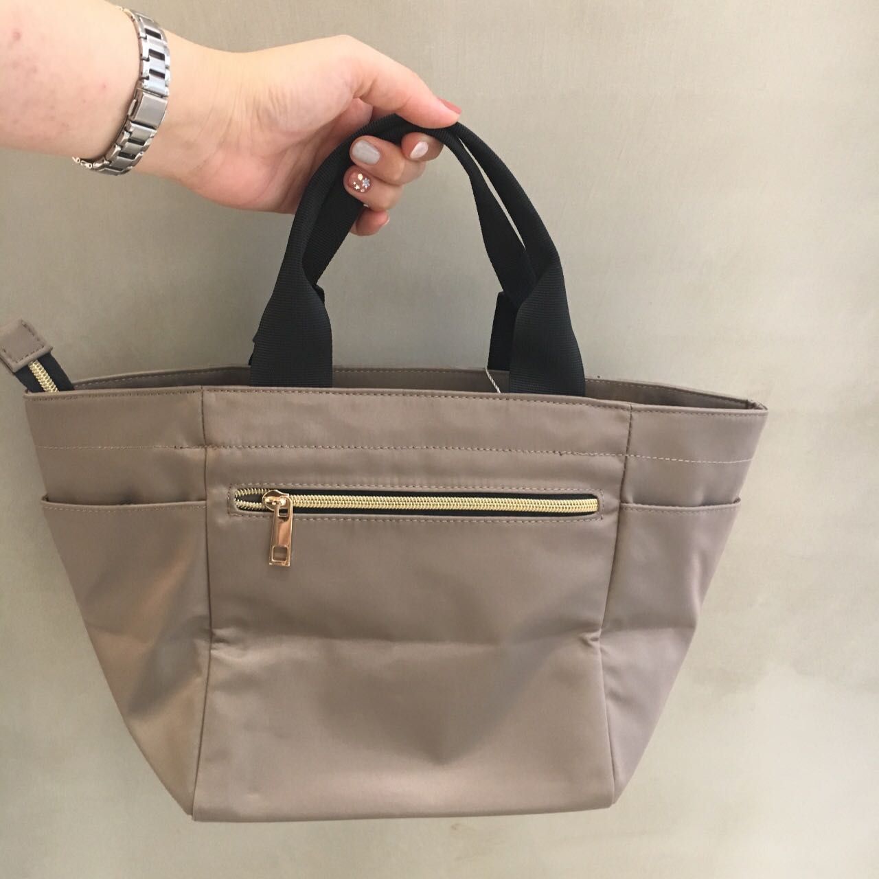 ナイロンですがカジュアル過ぎず、幅広いコーディネートで合わせて頂けます。