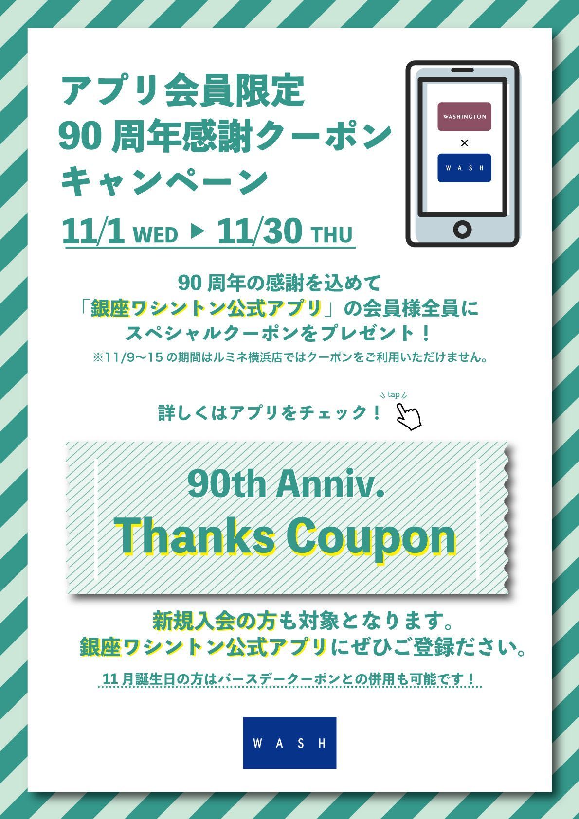 『銀座ワシントン公式アプリ』ではWASH・Essay・銀座ワシントン各店と