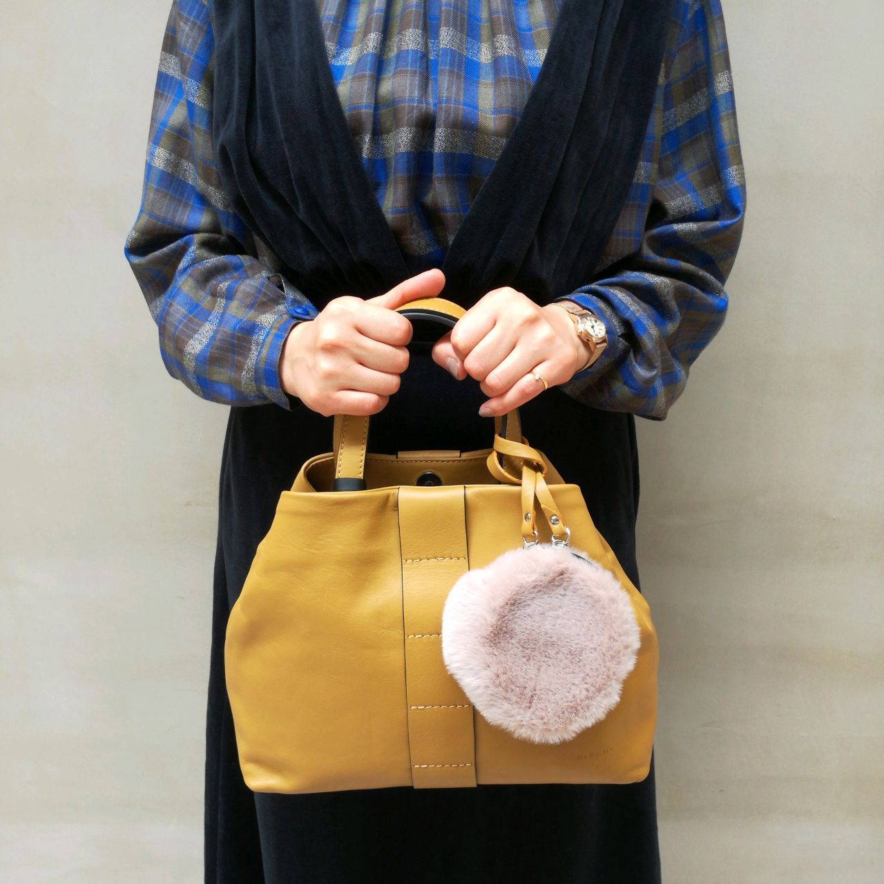 取り外しのできるフェイクファーのミニポーチが付いています。
