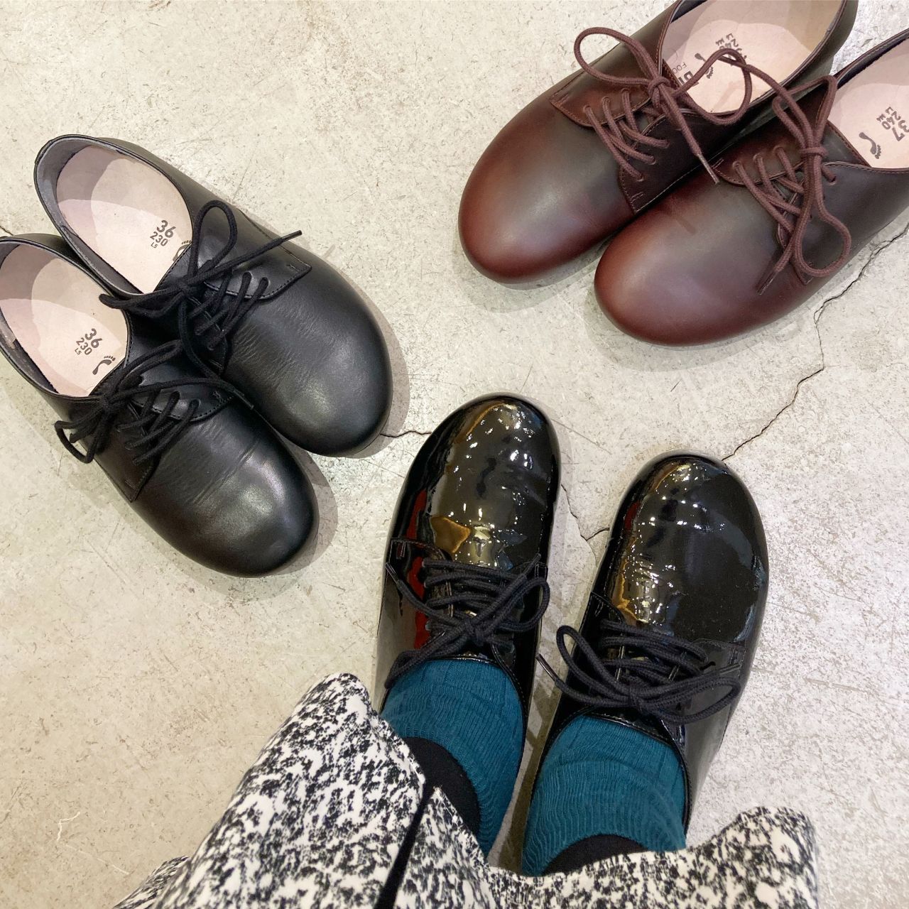 つま先の丸いフォルムが程よくマニッシュさをプラス。