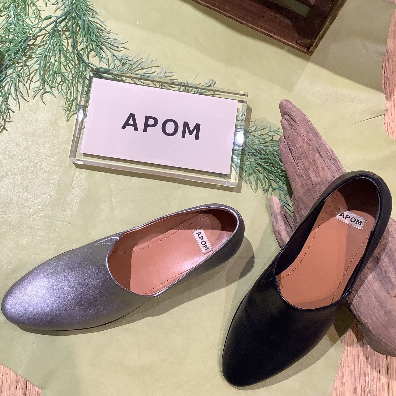 APOM は“A Part Of Me (自分の一部) ” と言う意味です。いつでも自分らしく履きこなしていただけるよう、ベーシックでミニマルなデザインのコレクションを展開しています。