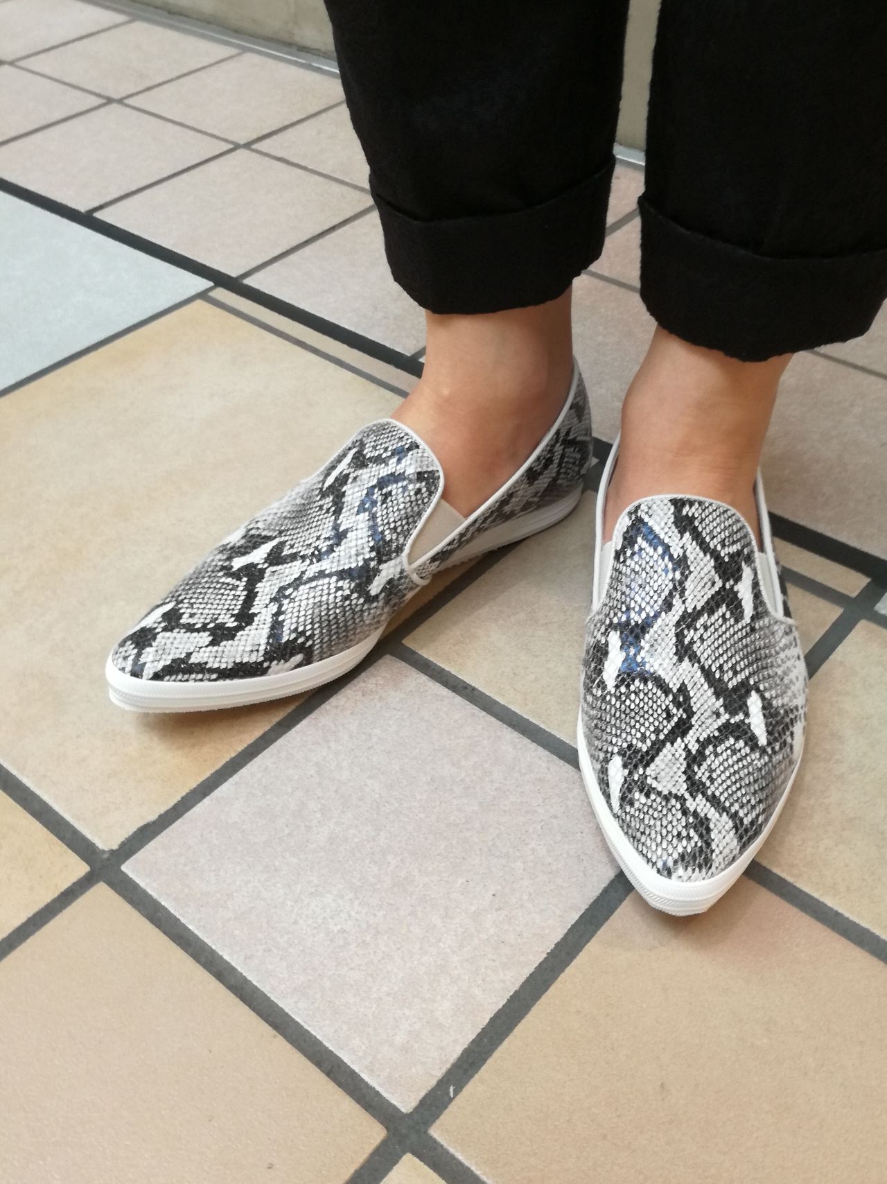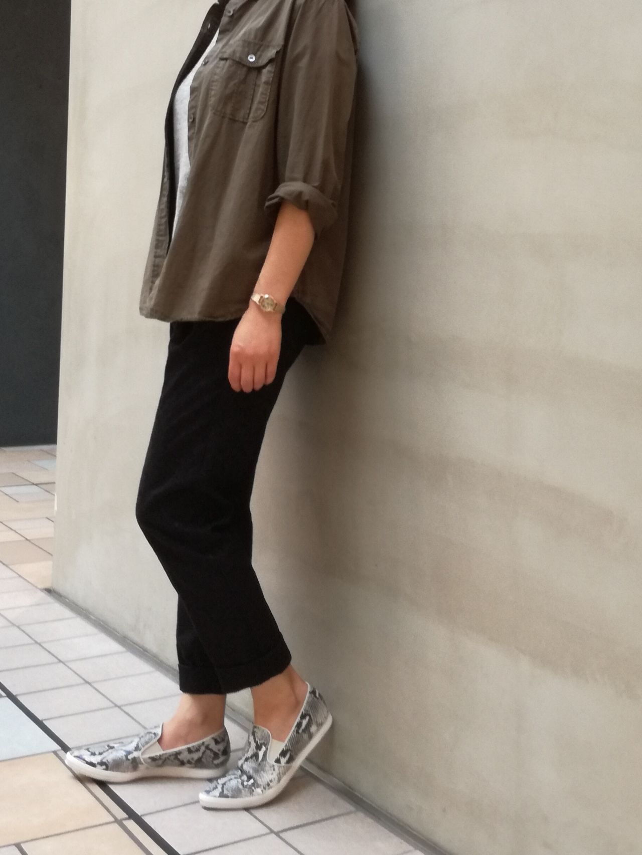 スネーク柄は、コーディネートにアクセントを付けてくれます。