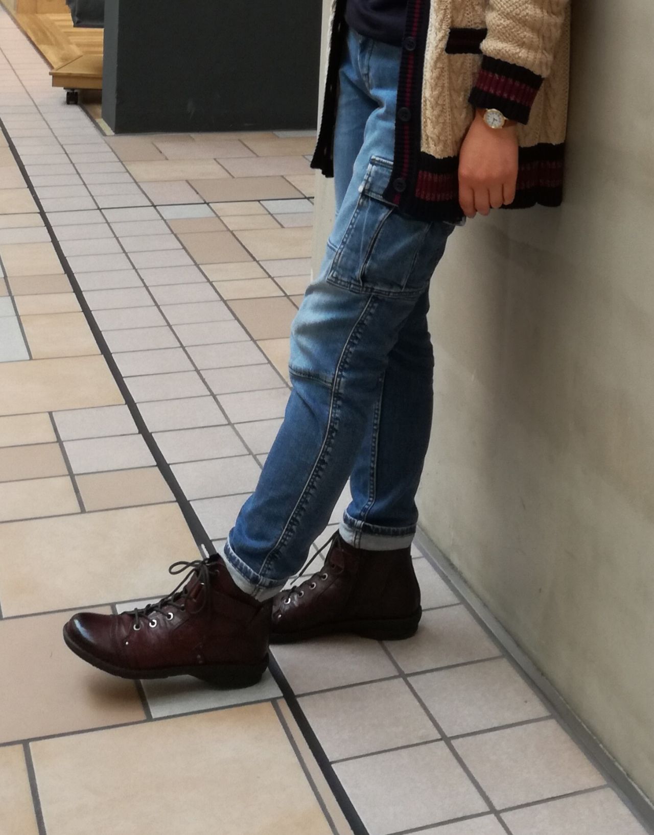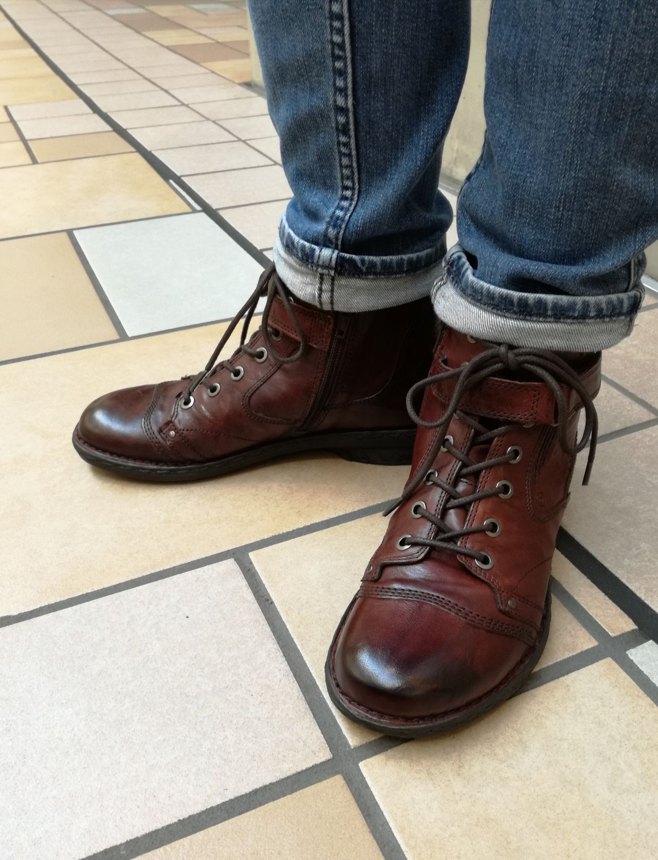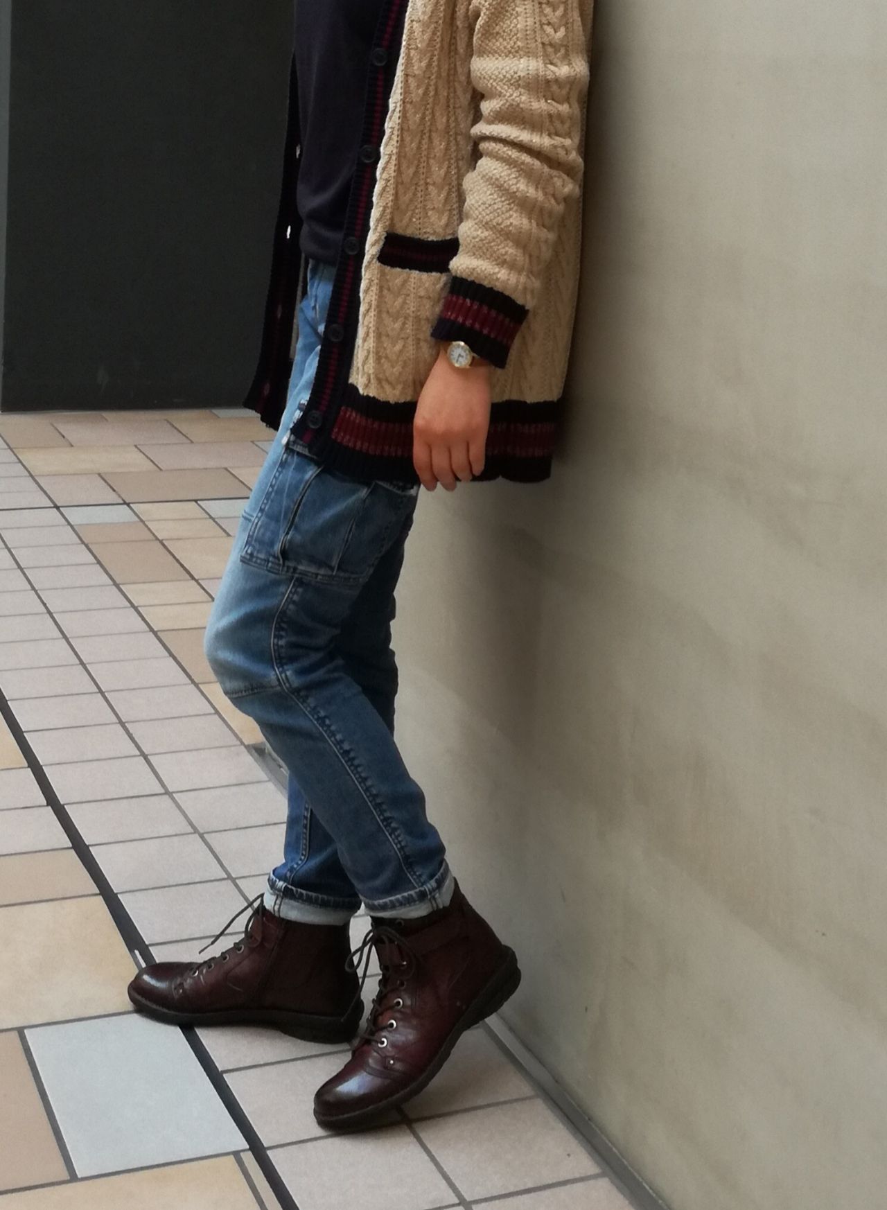 マニッシュな雰囲気が漂うブーツですが、ステッチや丸みのあるトゥが大人可愛さもあるので、スカートなどにも似合います。