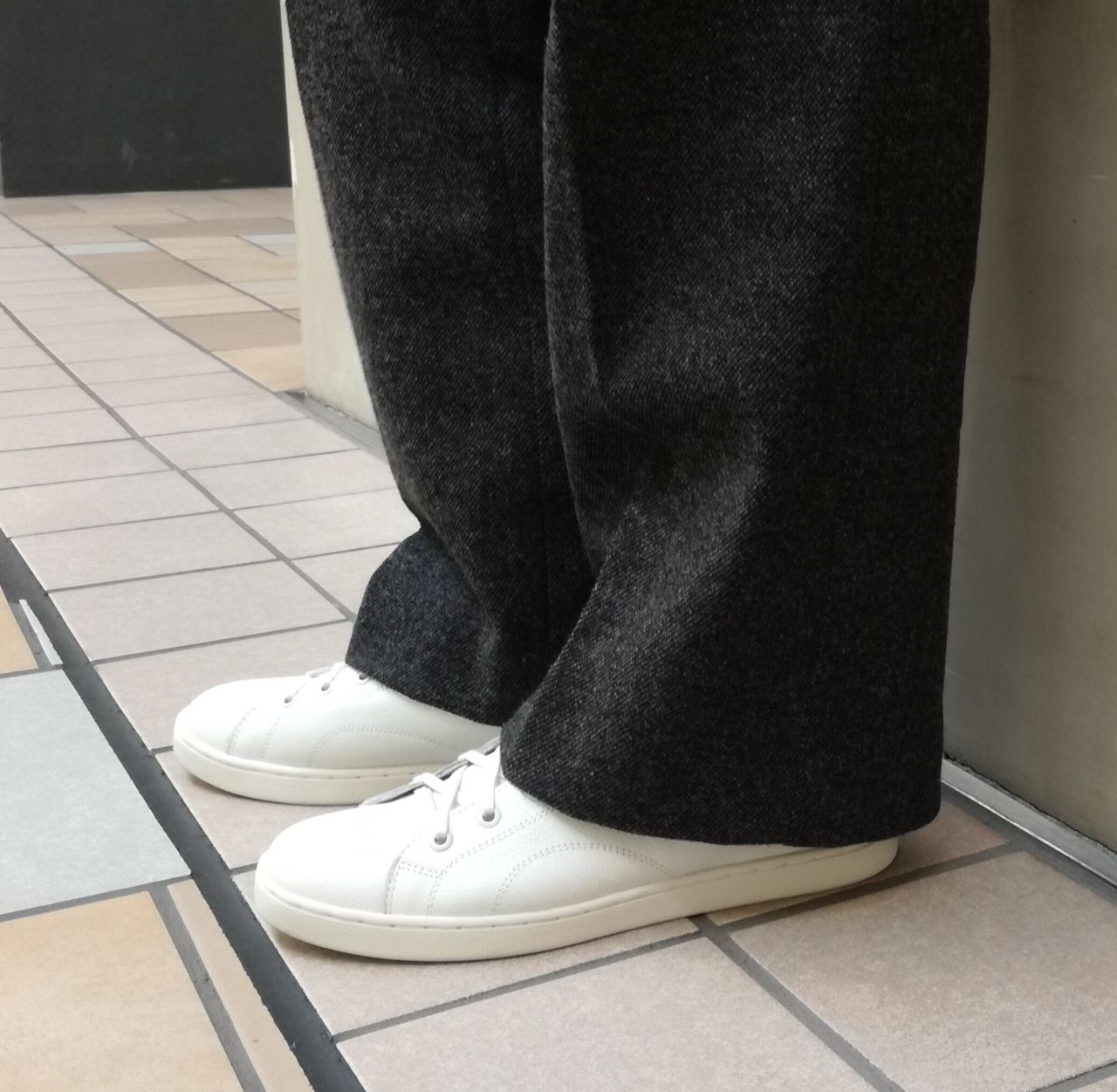 ダークトーンになりがちな冬のコーデの足元を、ホワイトで軽くするのもいいですね。